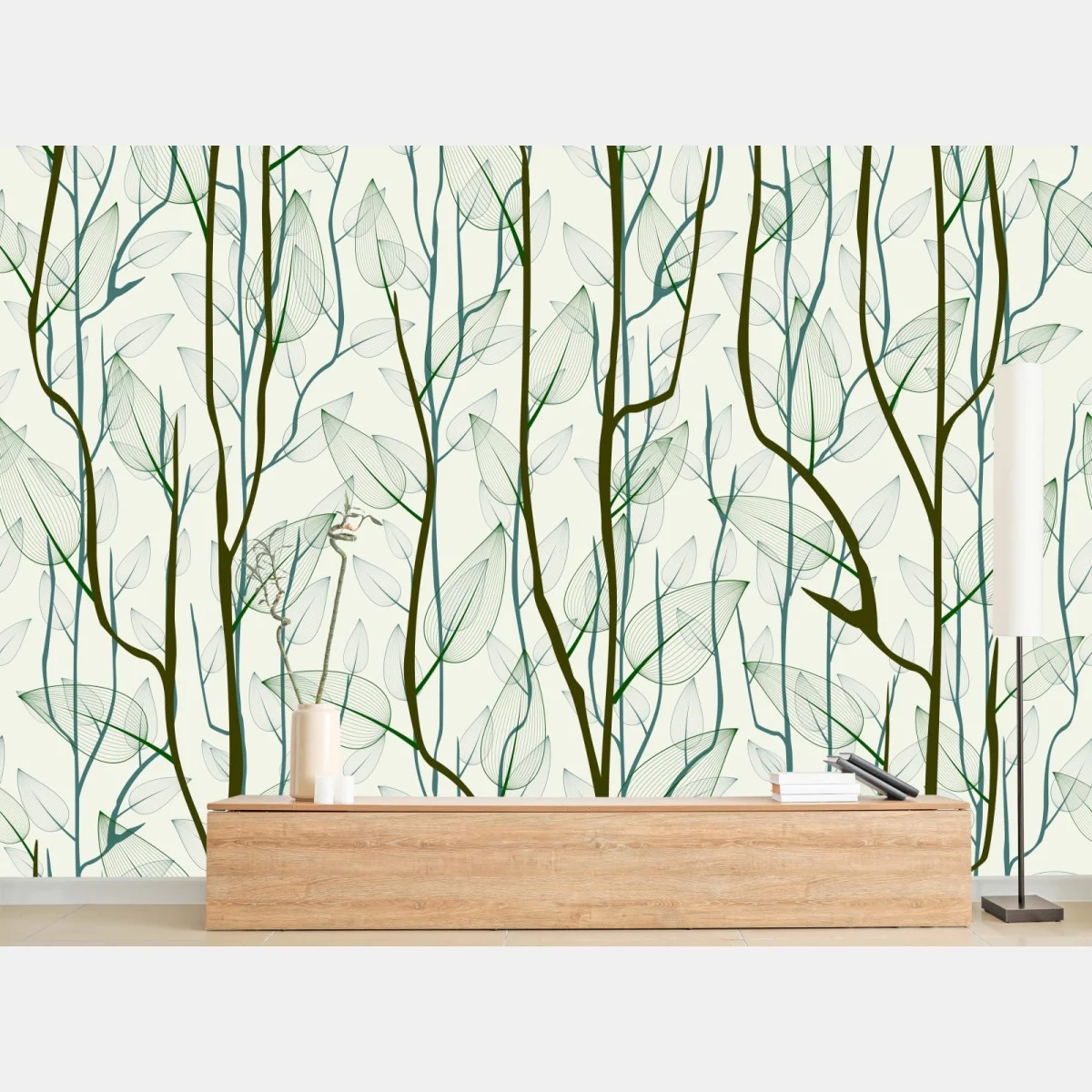 Carta da parati Motivo botanico rami e foglie in trasparenza