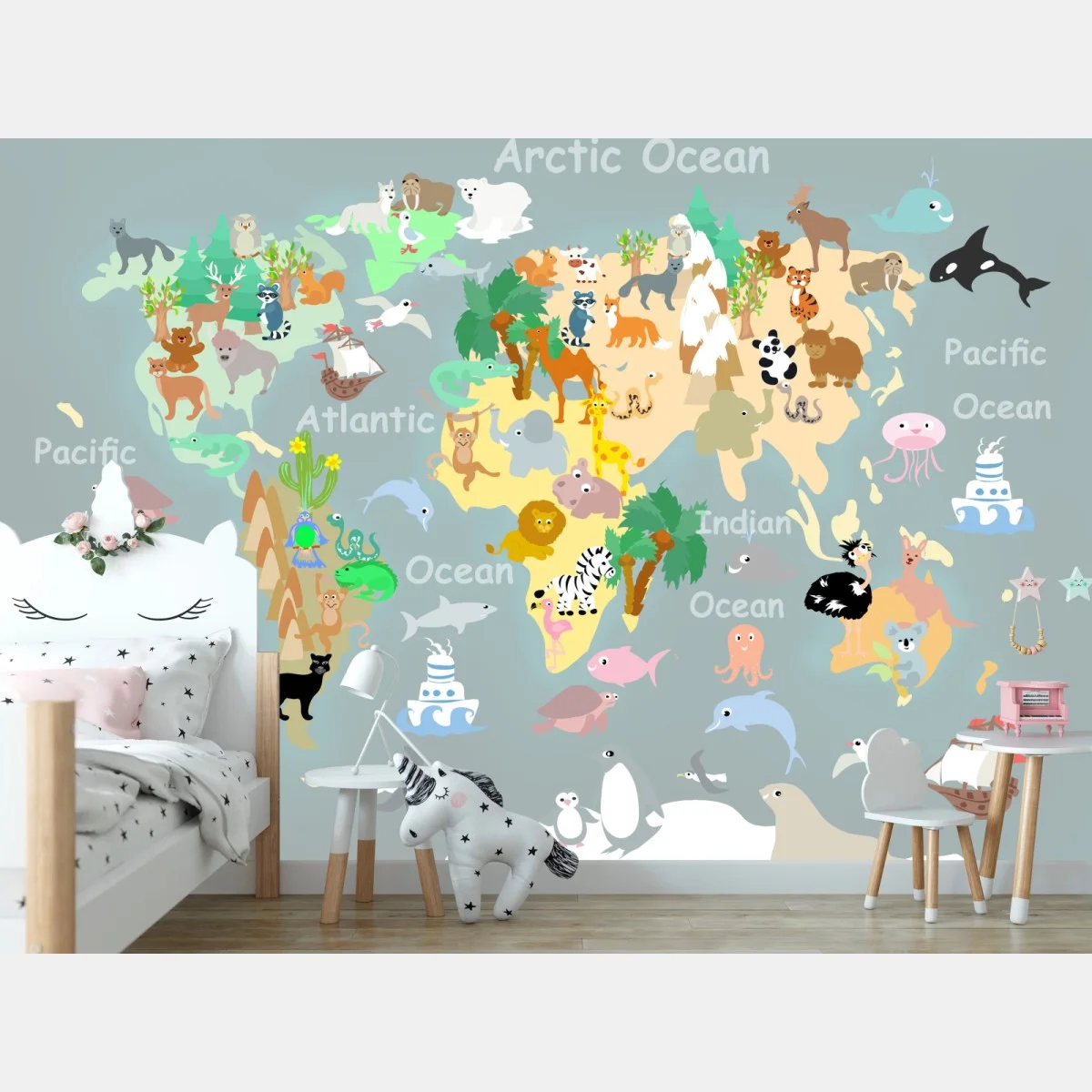 - decorazione, illustrazione, animali, colorato, fauna, mappa, mondo, bambini, educazione, didattico