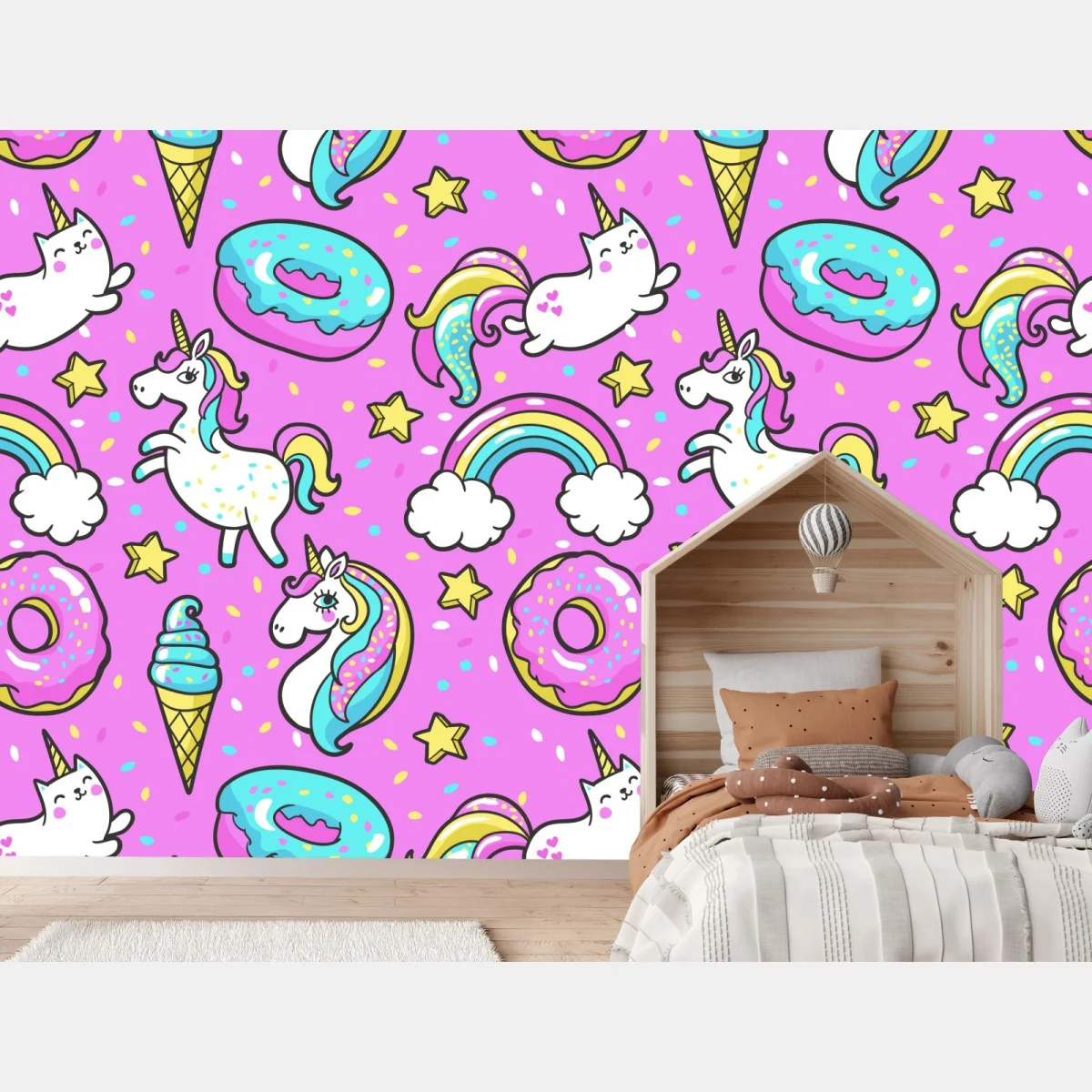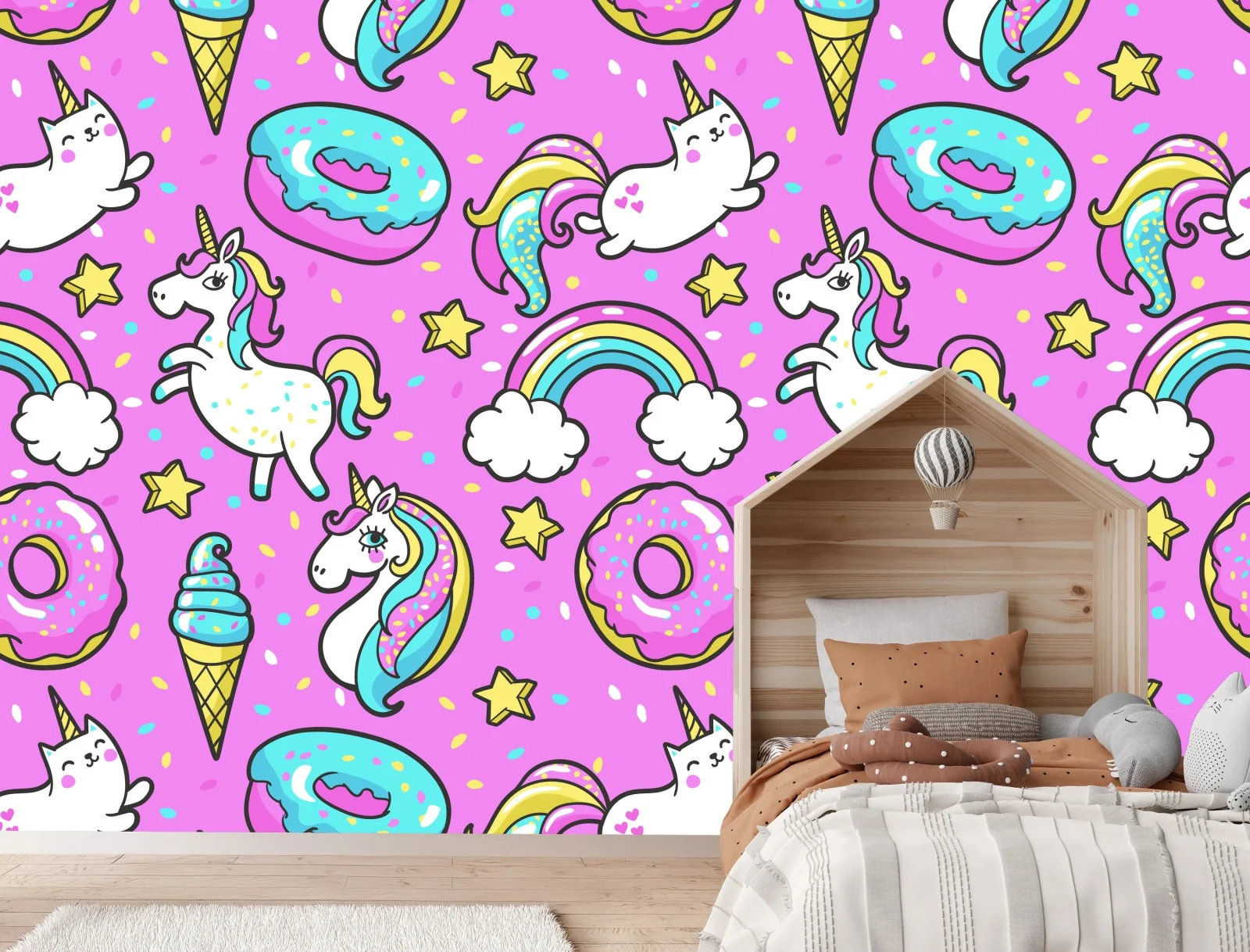 - nuvole, rosa, stelle, kawaii, fantasia, arcobaleni, unicorni, gattini unicorno, ciambelle, gelati