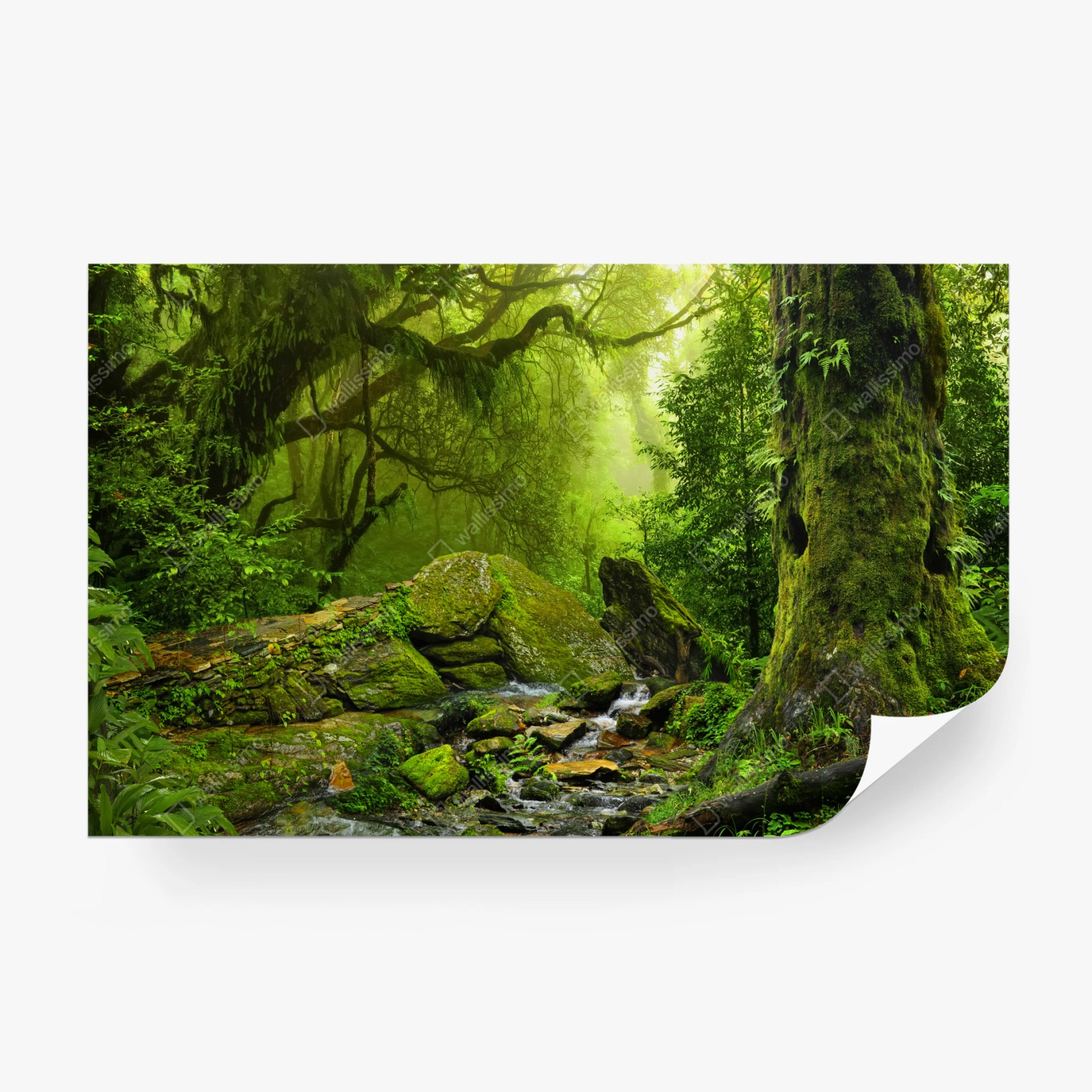 - natura, bosco, fogliame, foresta pluviale, vegetazione, muschio, atmosfera mistica, ruscello, alberi secolari, paesaggio verde