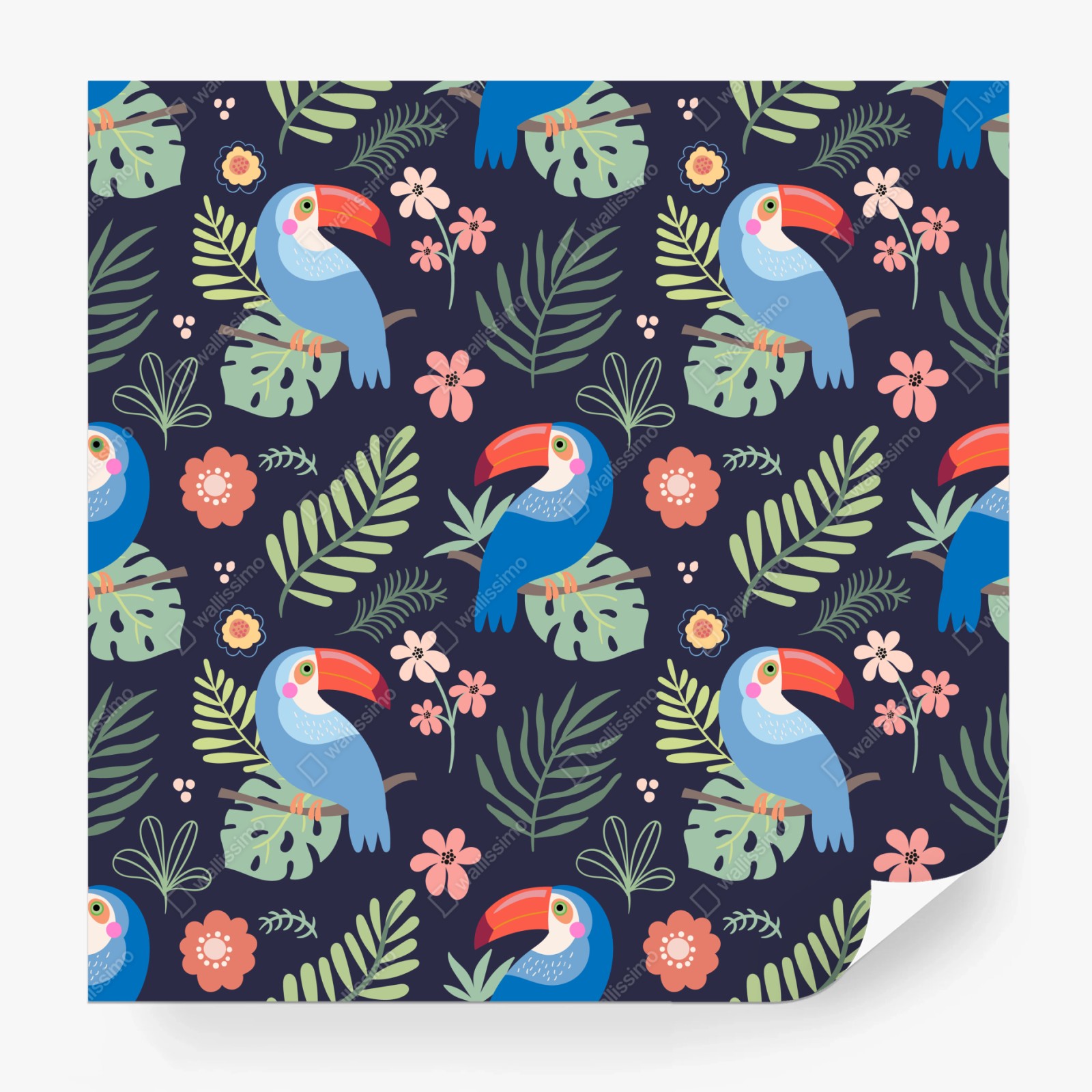 Carta da parati Motivo tucani tropicali su sfondo scuro