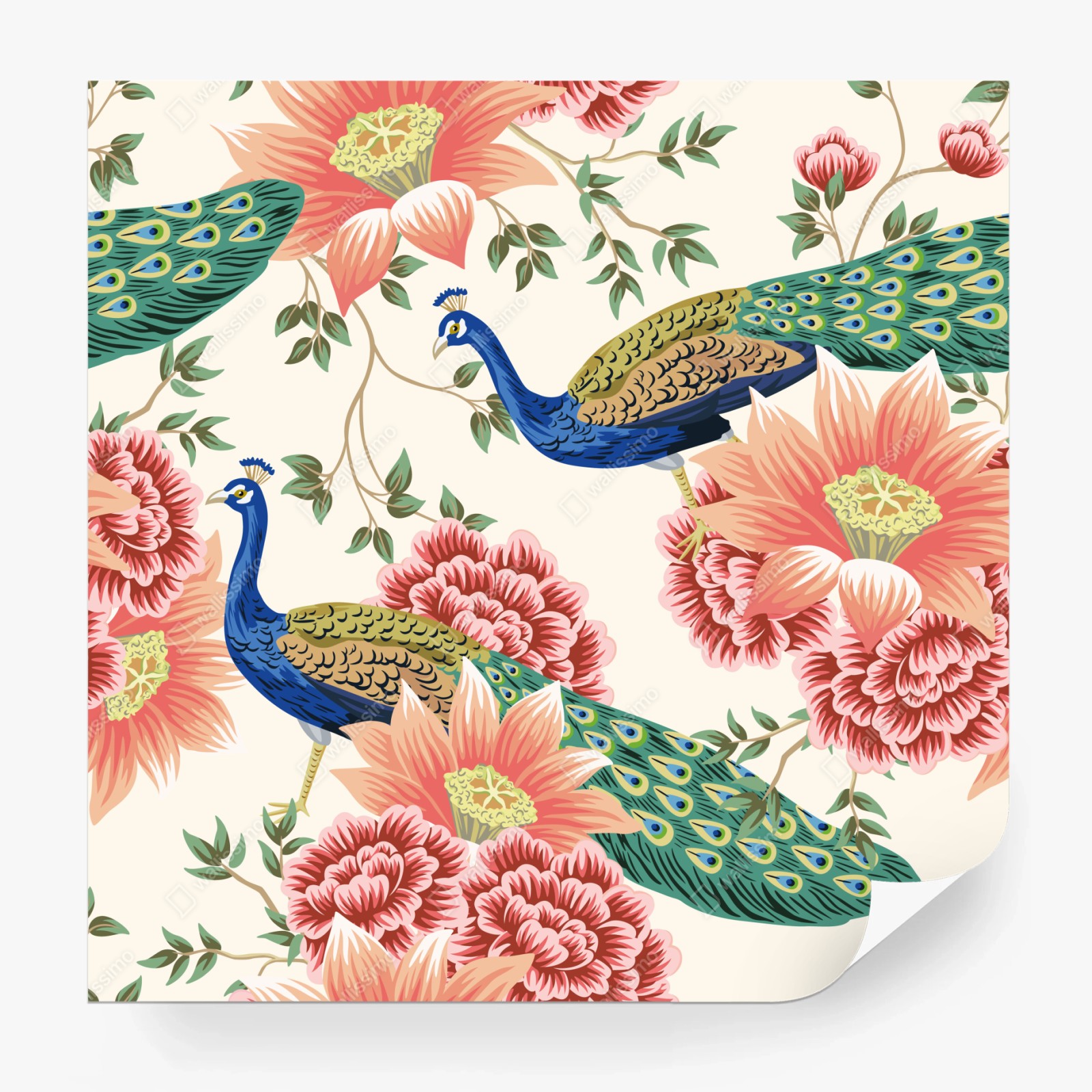 Carta da parati Pavoni e fiori in stile botanico