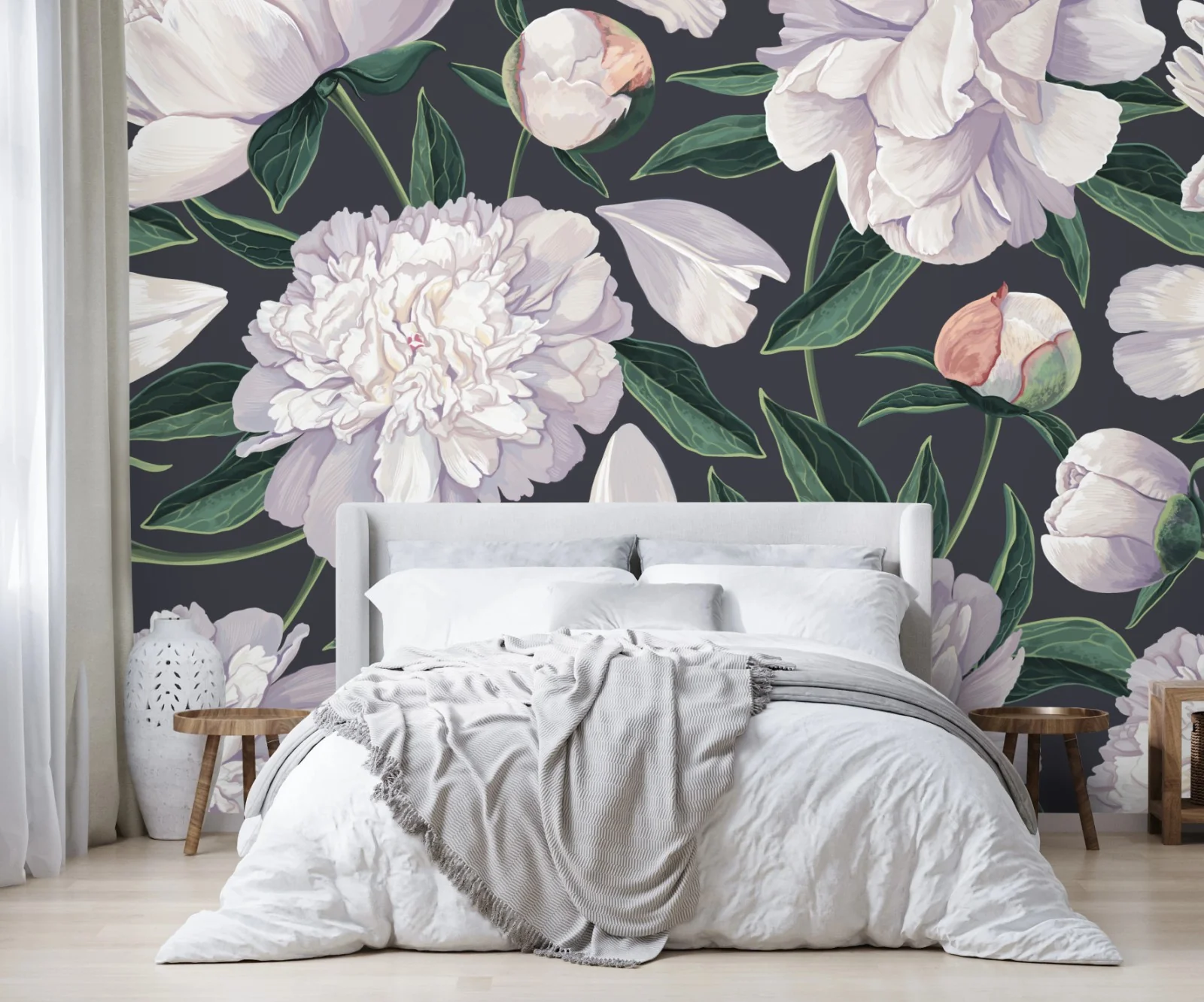 Carta da parati Eleganza di peonie su sfondo scuro