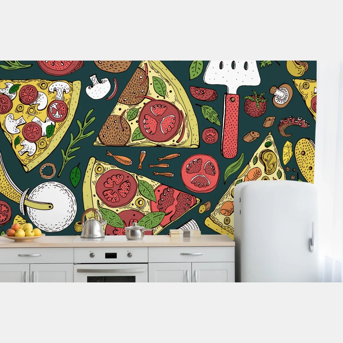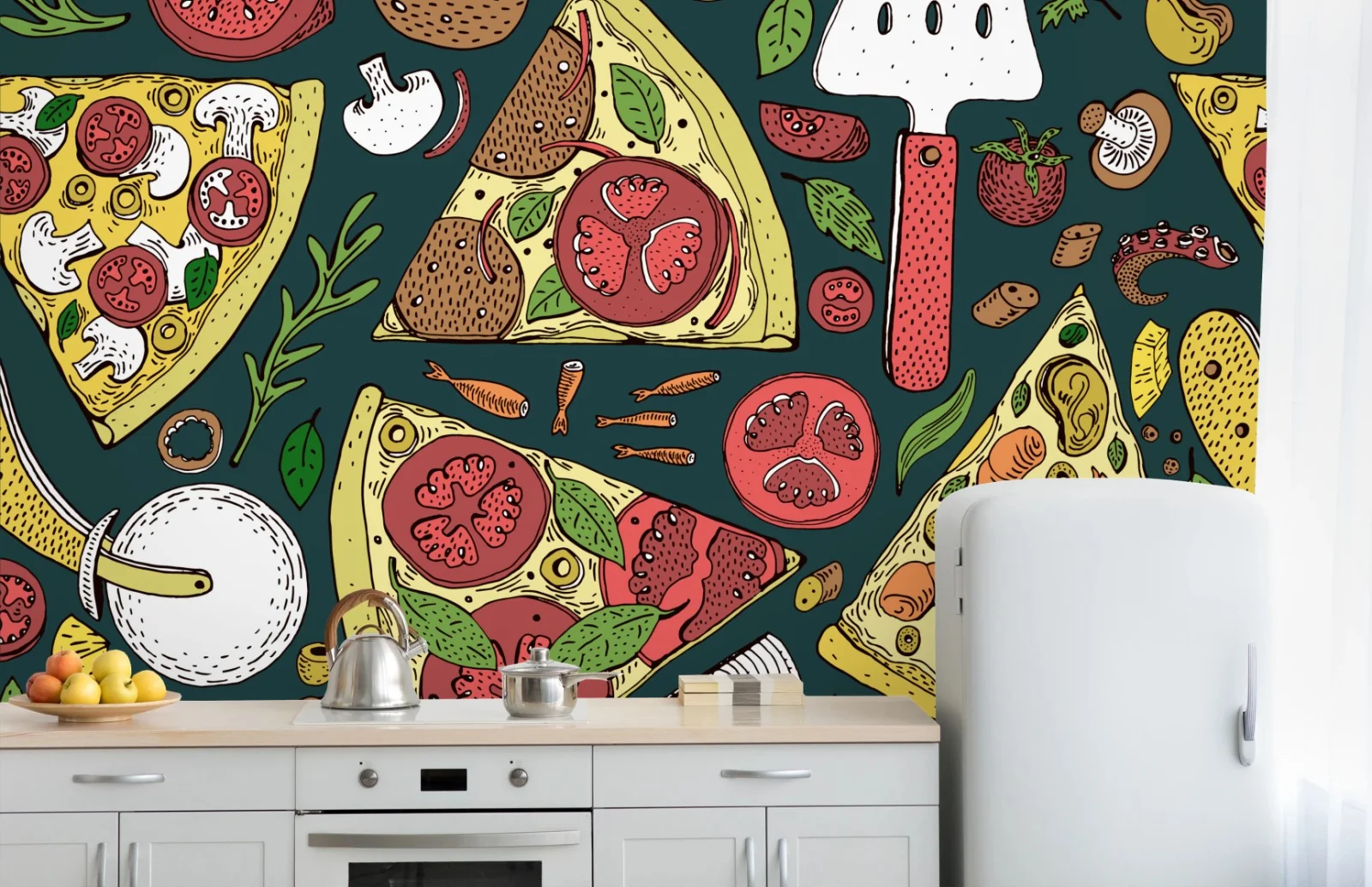Carta da parati Motivo pizza illustrata colorata per pareti