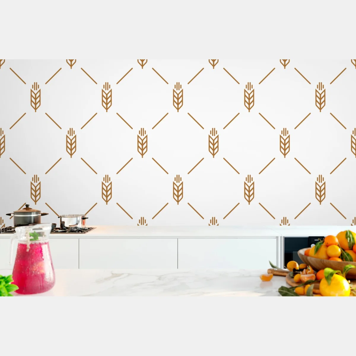 - elegante, minimalista, pattern geometrico, oro, decorazione da parete, motivo ripetuto, grano, sfondo bianco, spiga, cereali