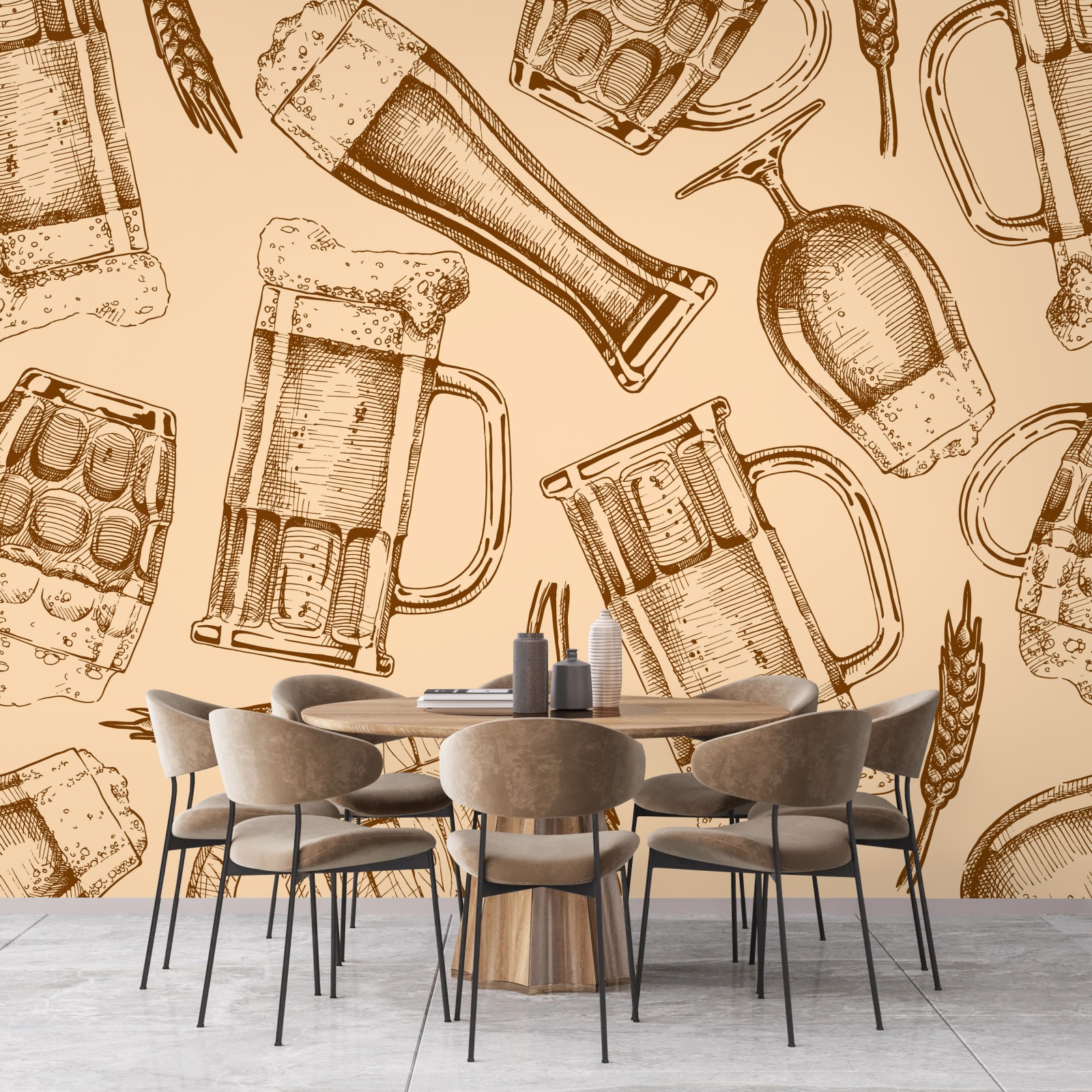 Carta da parati Motivo birra illustrato in stile vintage