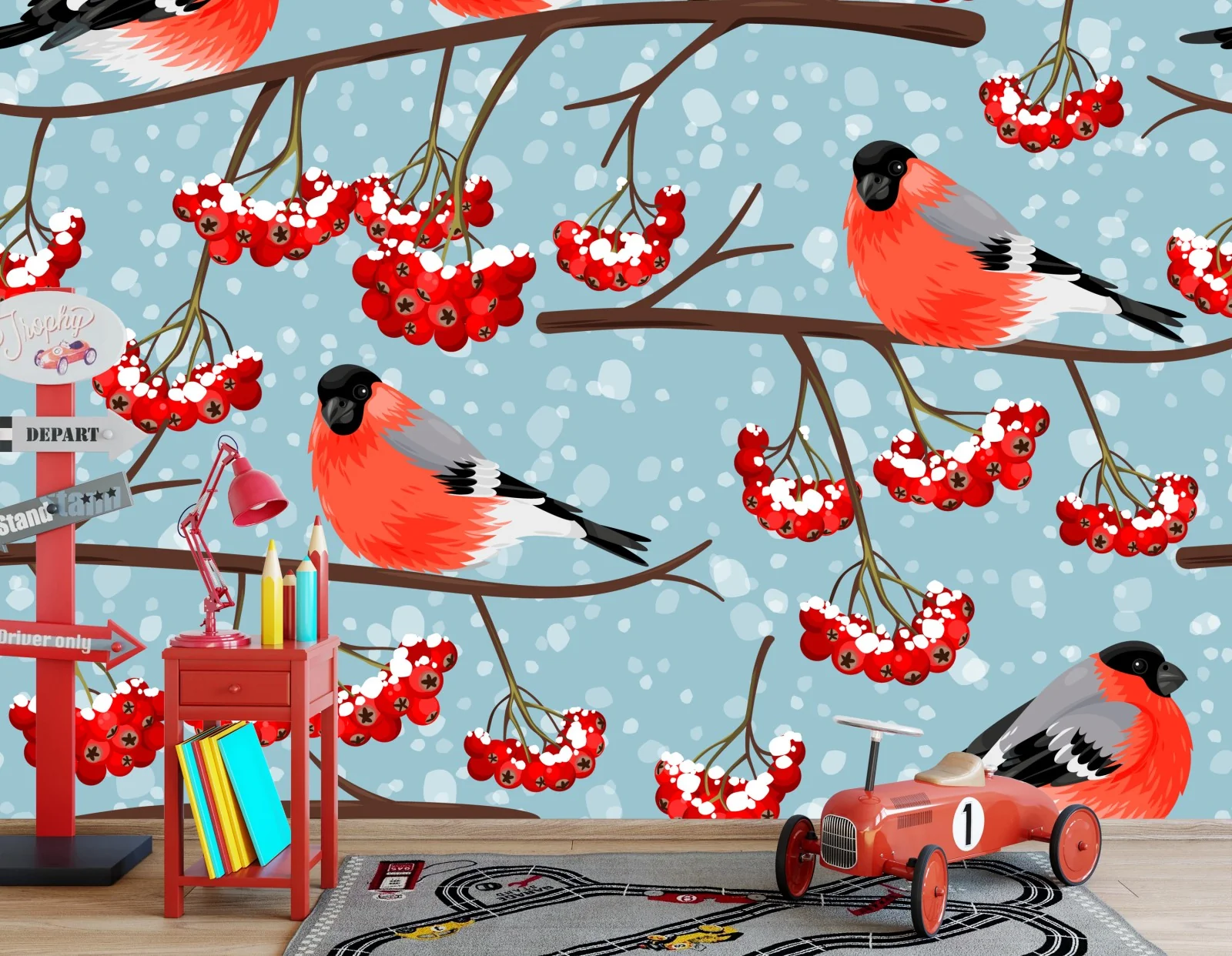 Carta da parati Pattern invernale con frosone e bacche