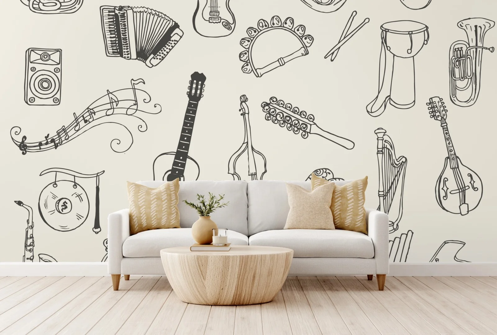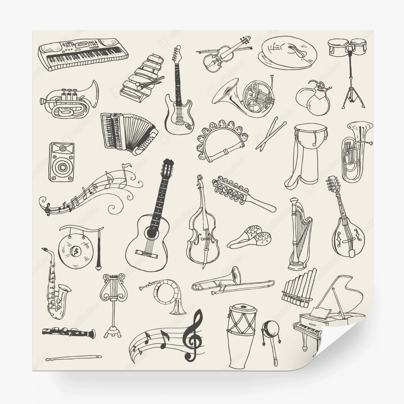 Carta da parati Collage di strumenti musicali disegnati a mano