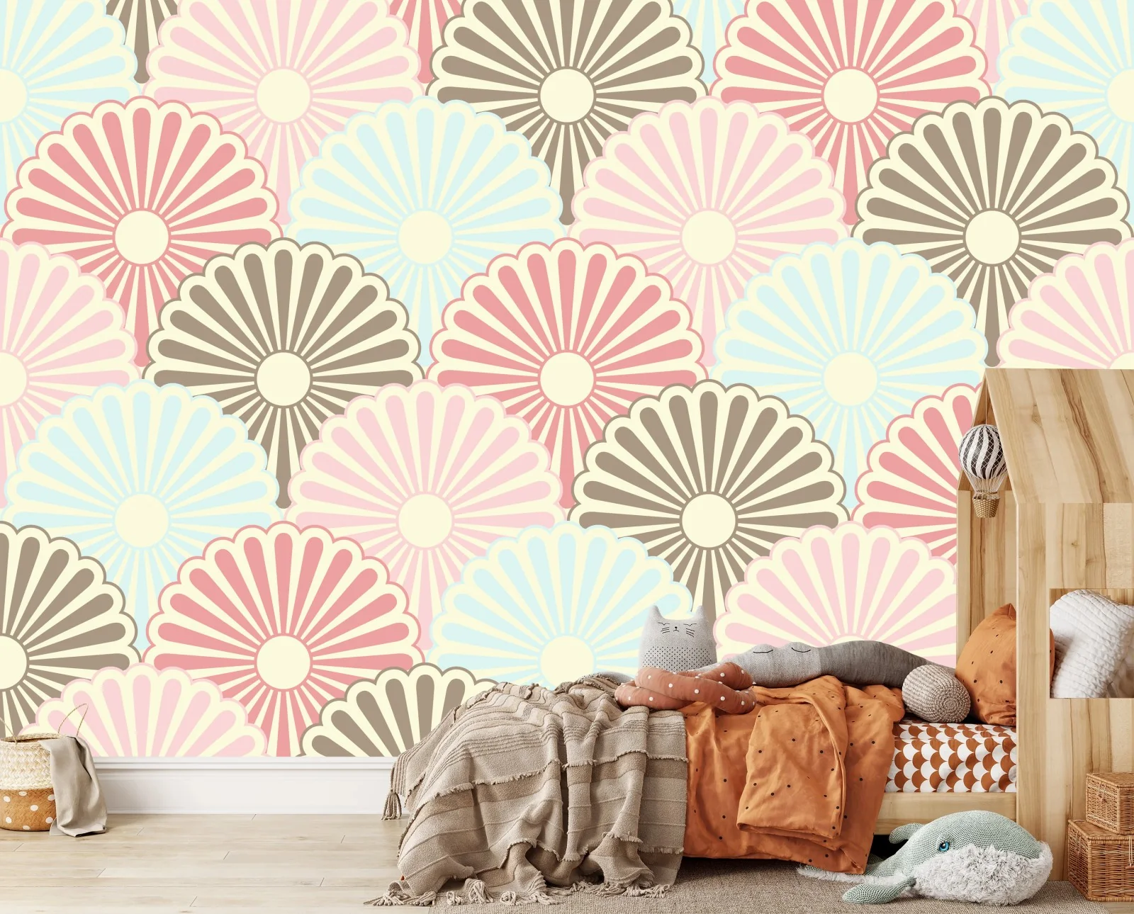 Carta da parati Motivo a ventaglio pastello vintage ed elegante