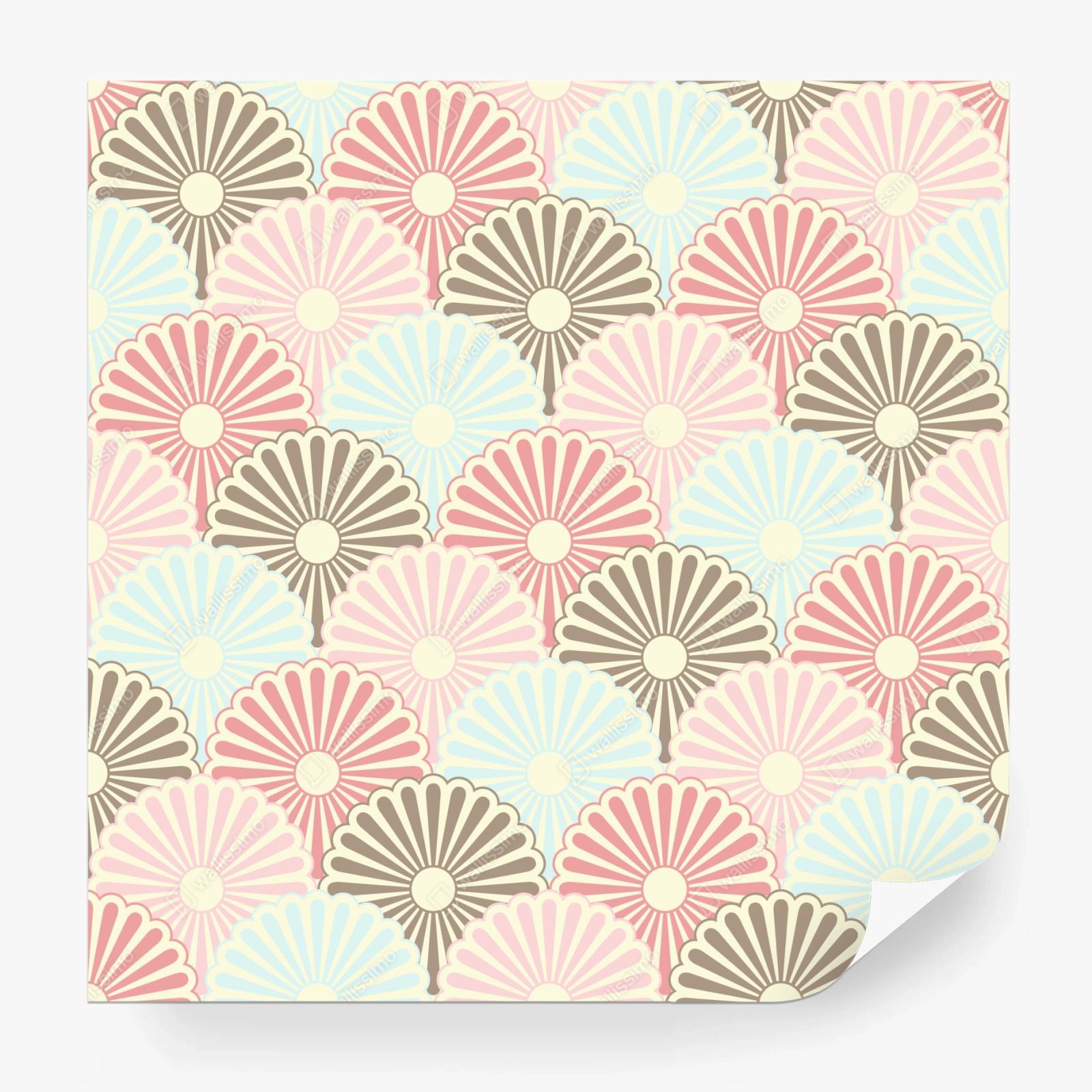 - elegante, stile retrò, pattern geometrico, decorazione murale, vintage, colori pastello, motivo floreale, motivo a ventaglio, ripetitivo, design giapponese