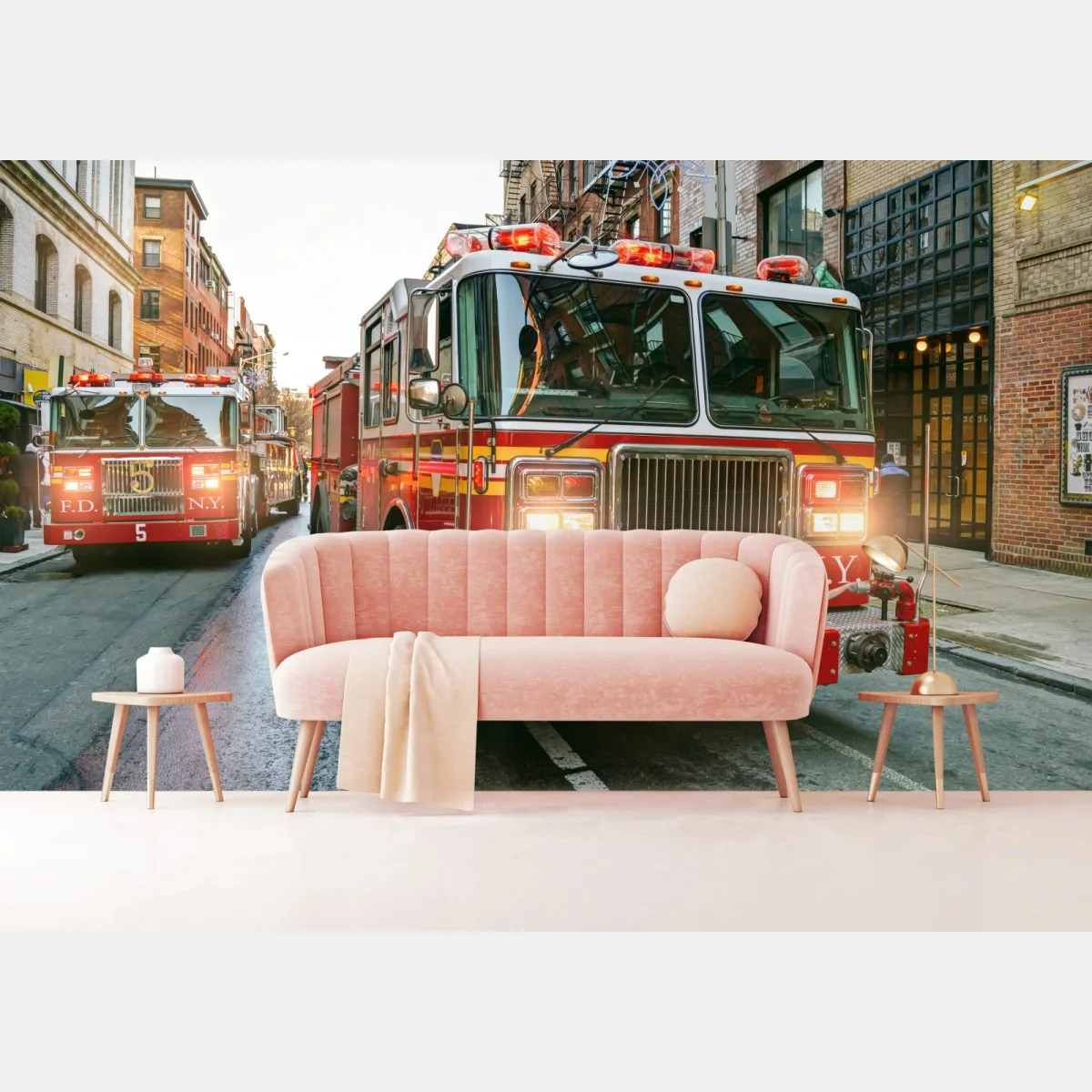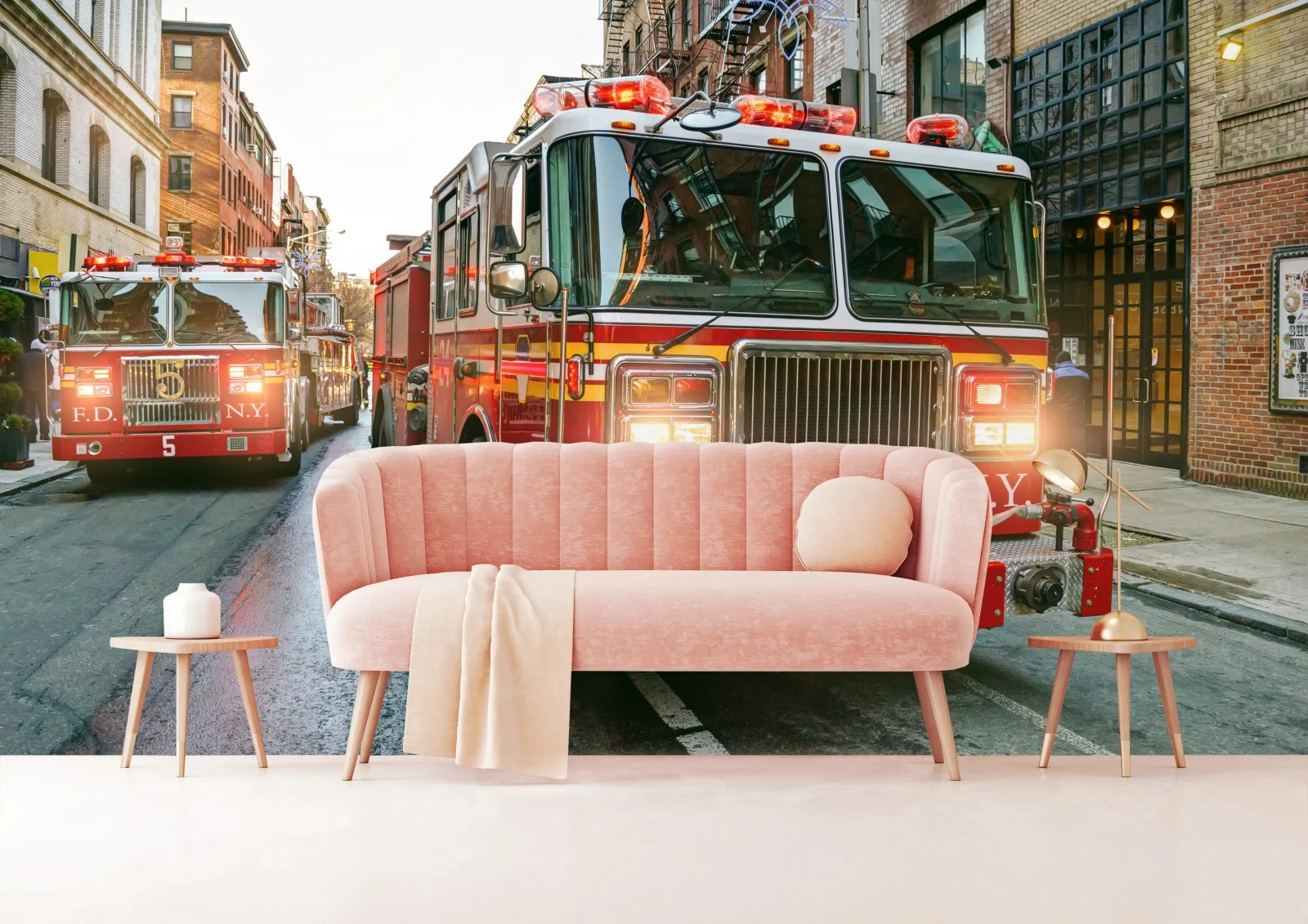 Carta da parati Convoglio di camion dei pompieri a Manhattan