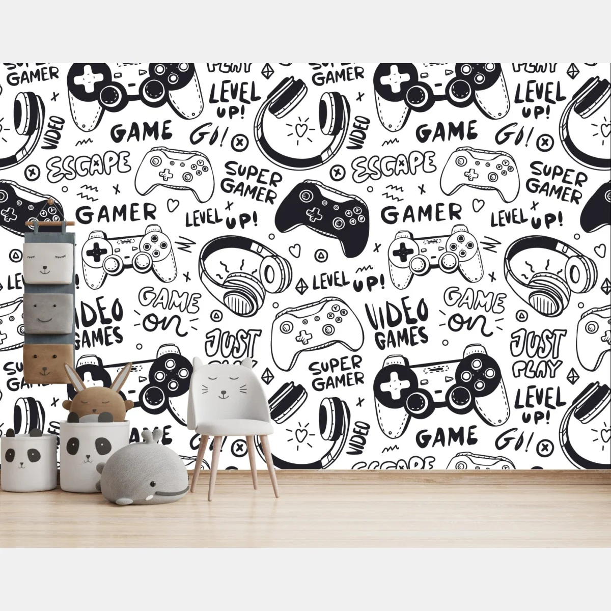 - bianco e nero, decorazione, sfondo, pattern, disegno a mano, controller, videogiochi, gamer, cuffie, sala giochi