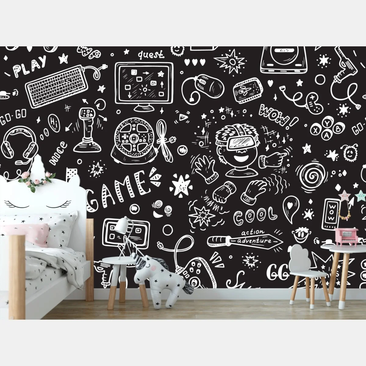 Carta da parati Doodle di videogiochi e realtà virtuale