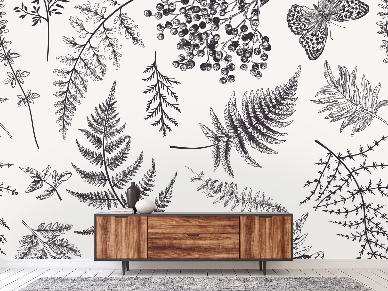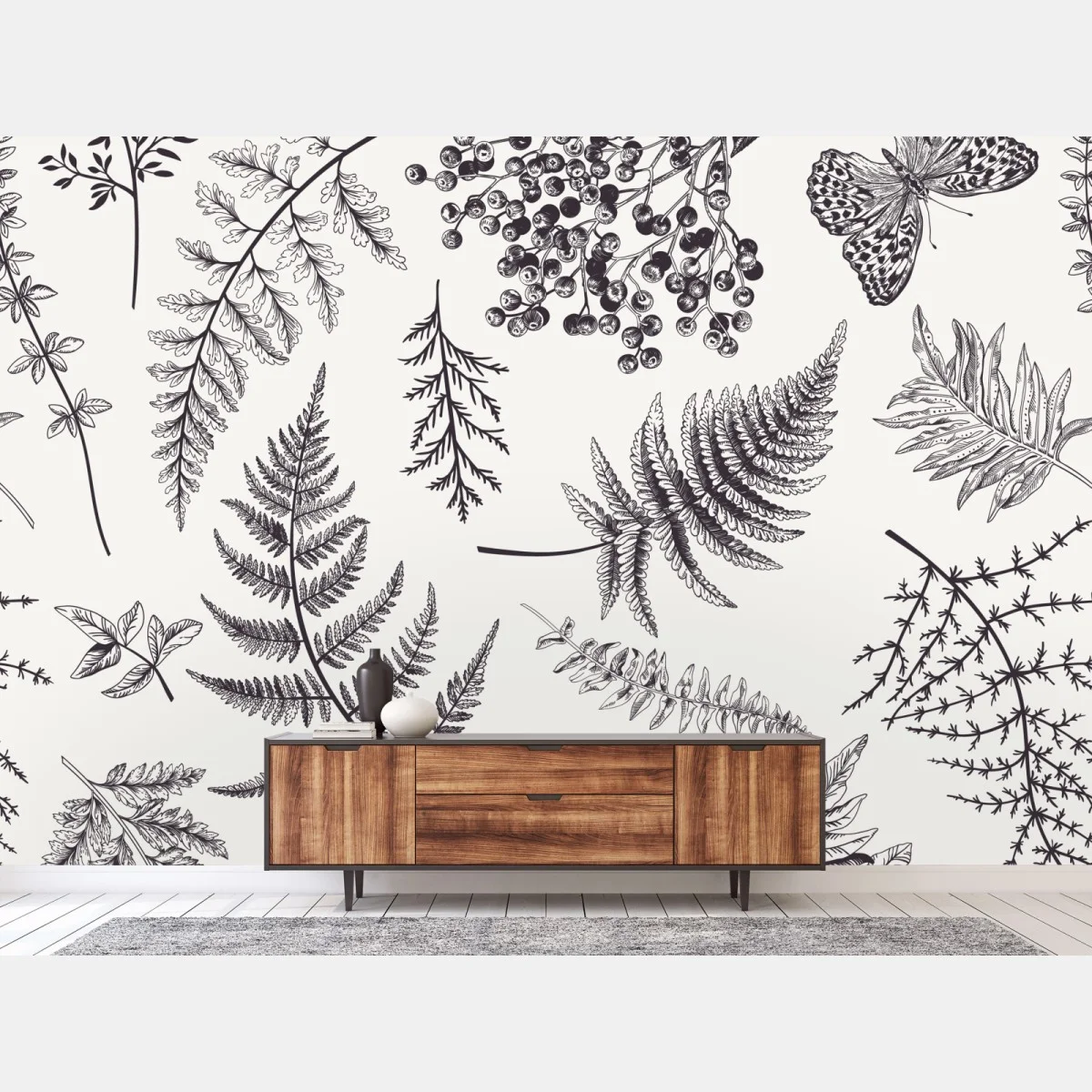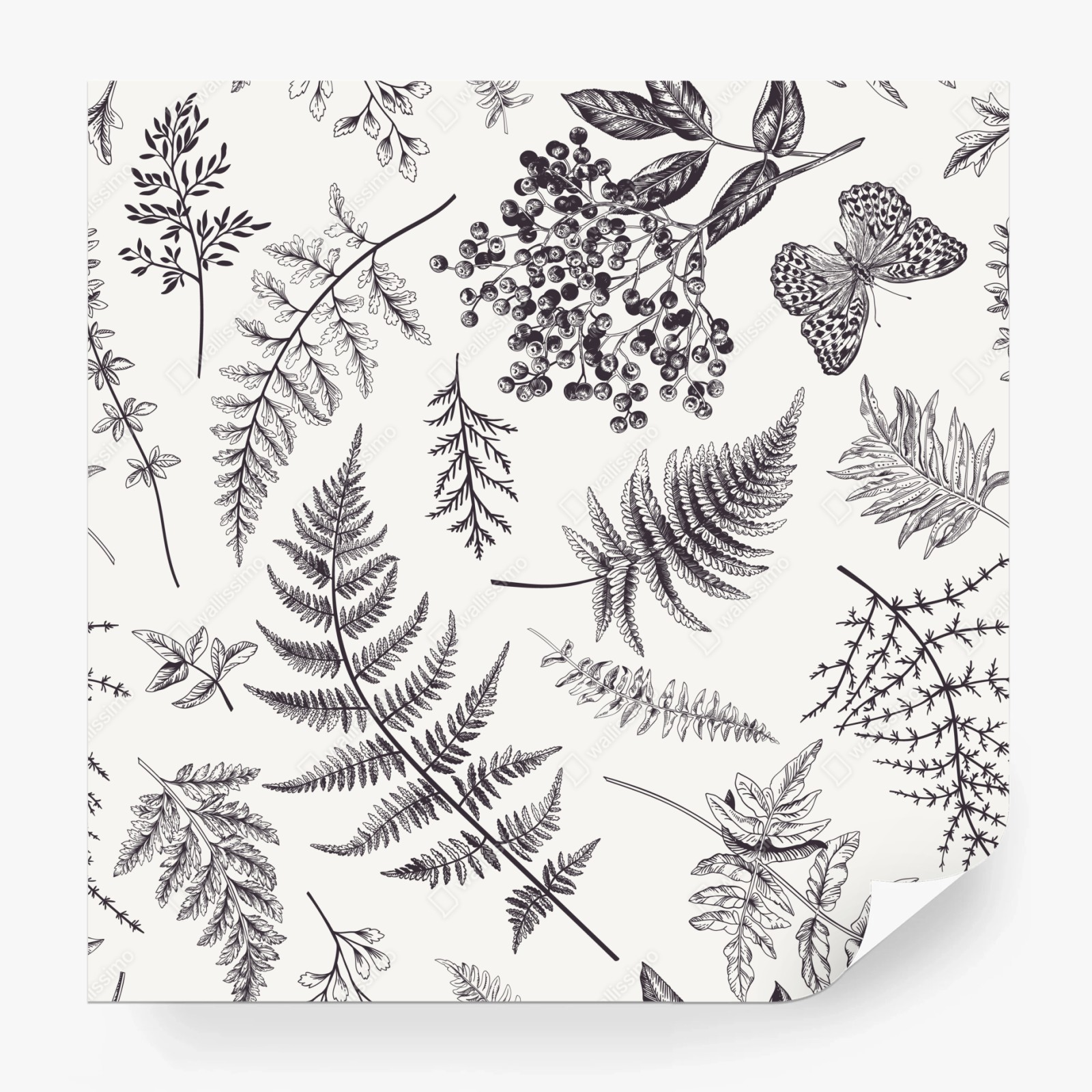 Carta da parati Eleganza botanica con felci e bacche
