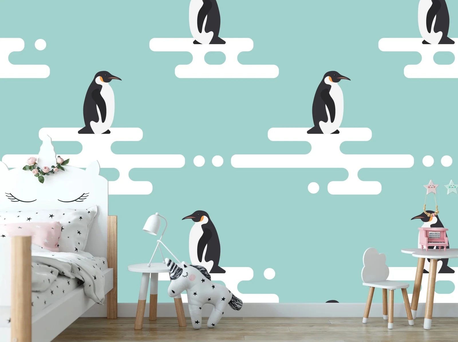 Carta da parati Pinguini su lastre di ghiaccio in stile minimal