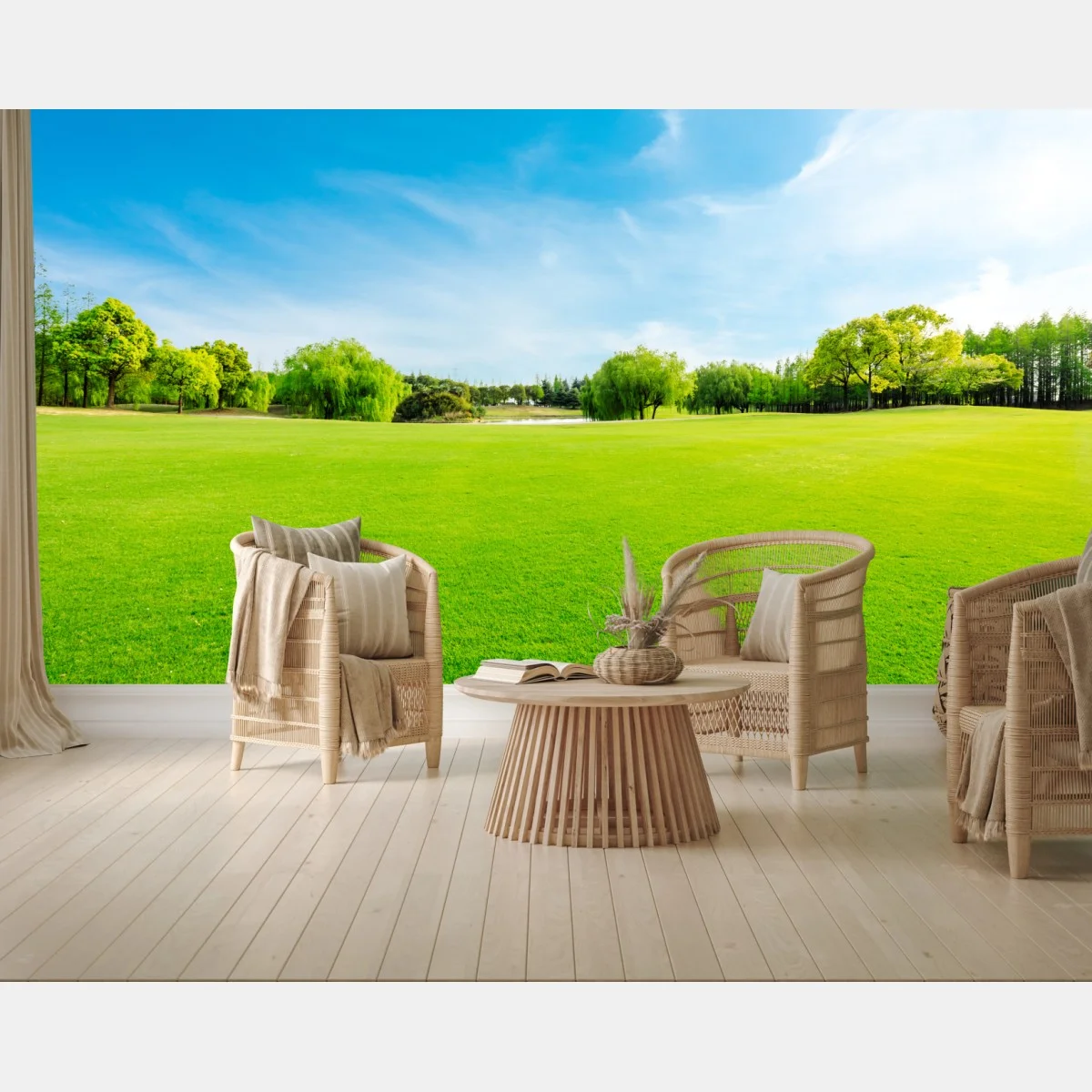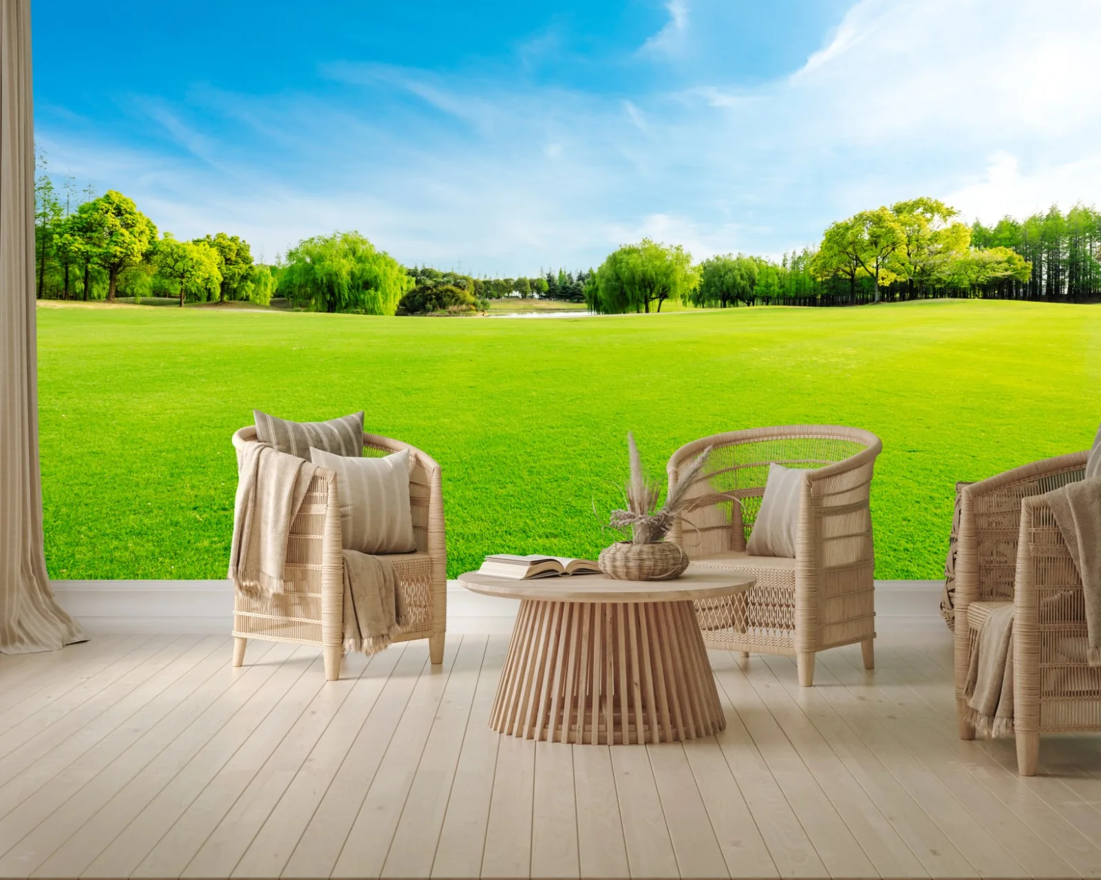 Carta da parati Paesaggio primaverile: prato verde e alberi
