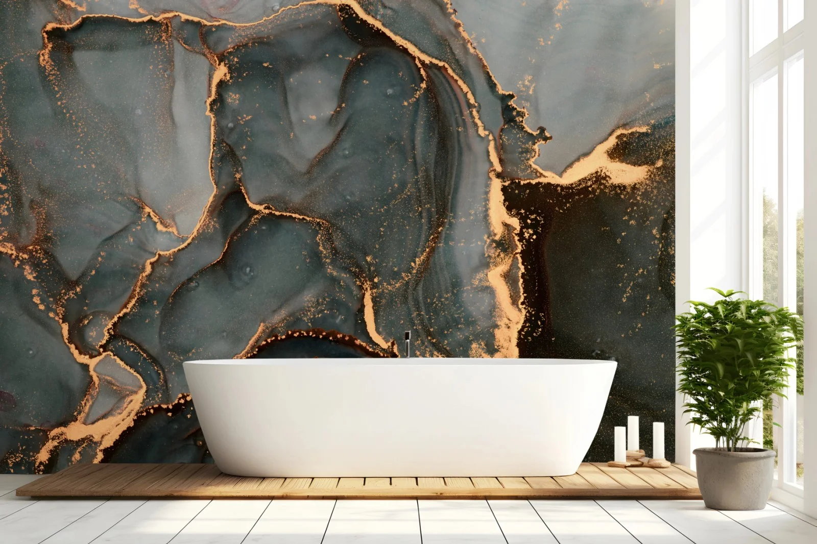 - onde, texture, elegante, lusso, decorazione d'interni, astratto, venature dorate, arte fluida, inchiostro alcolico, sfumato