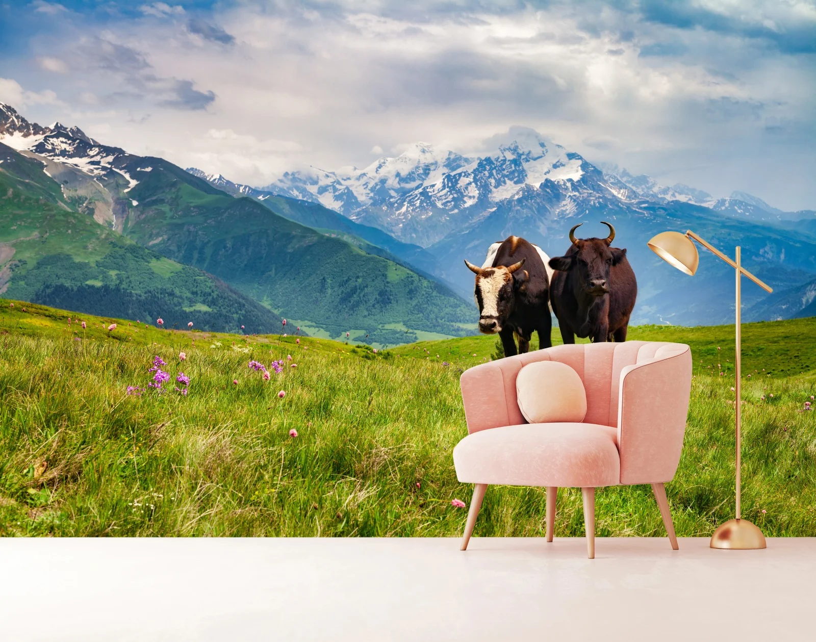 - natura, prato, montagna, valle, alpi, paesaggio alpino, pascolo, mucche, fiori di montagna, bestiame