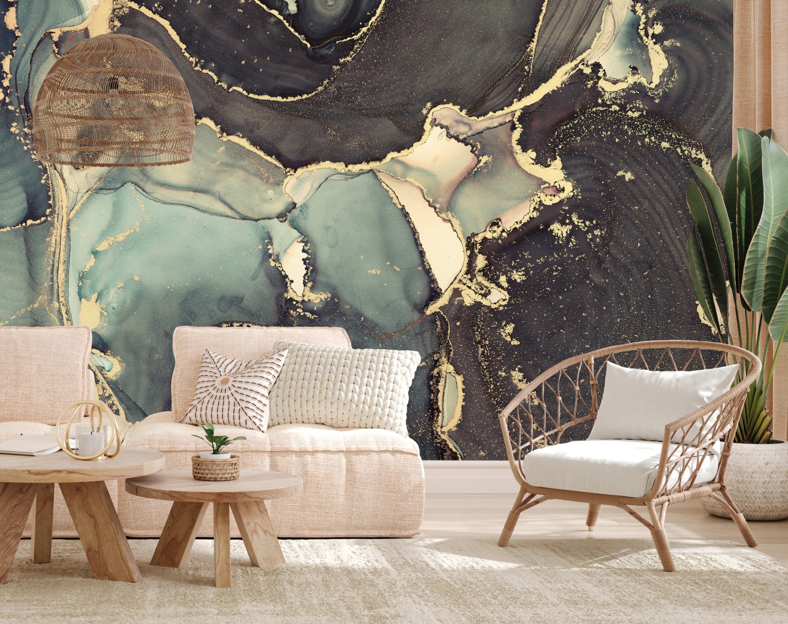 Carta da parati Marea dorata: astratto fluido in inchiostro alcolico