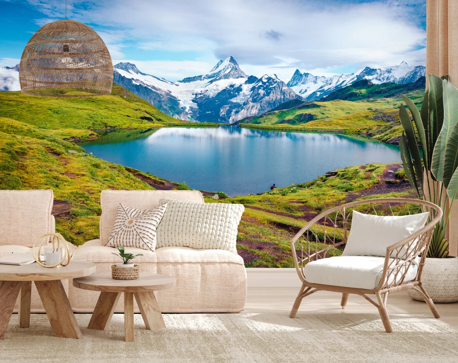 Carta da parati Panorama del lago Bachalpsee e del Schreckhorn