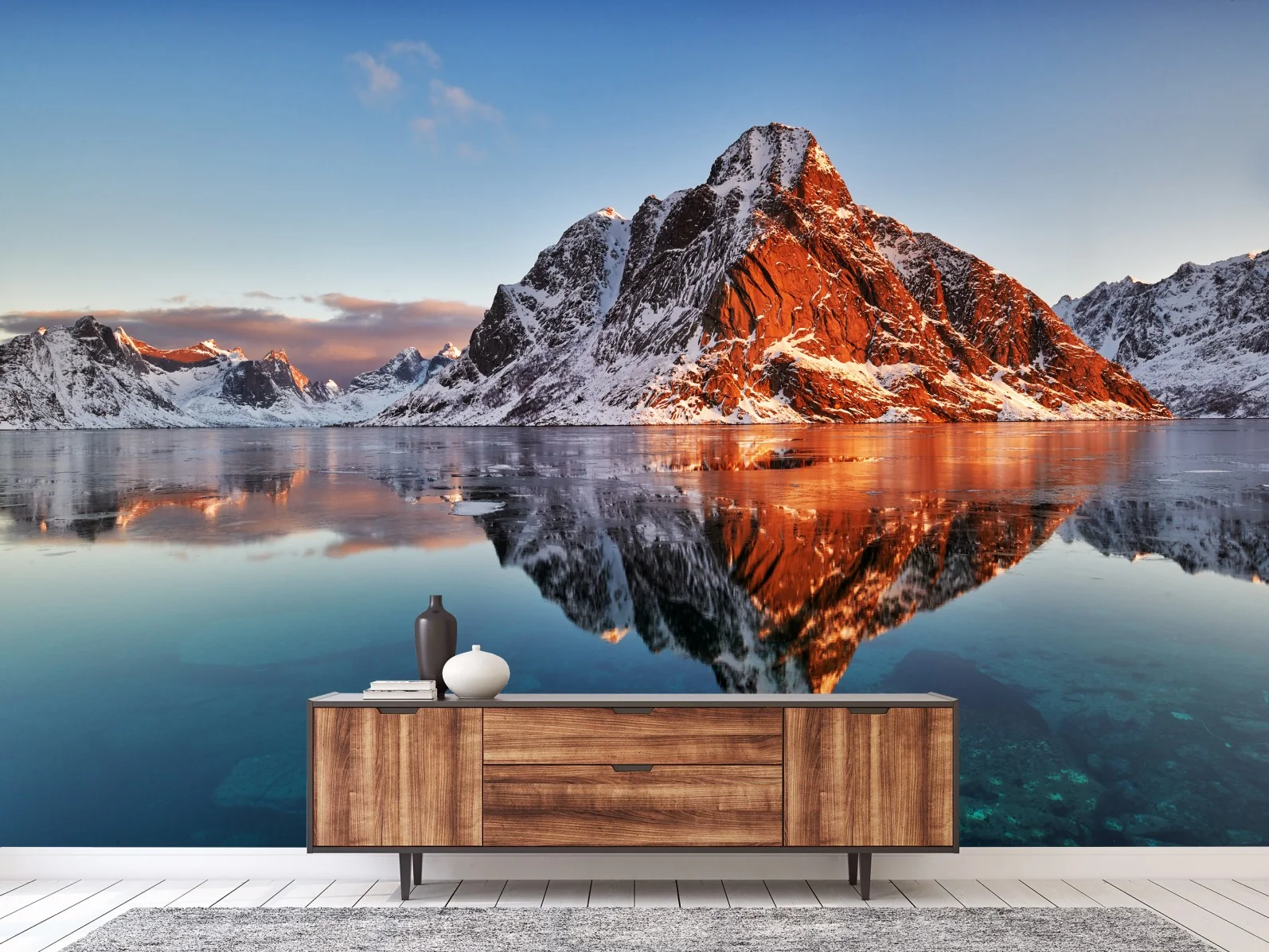 Carta da parati Alba dorata sulle montagne di Lofoten