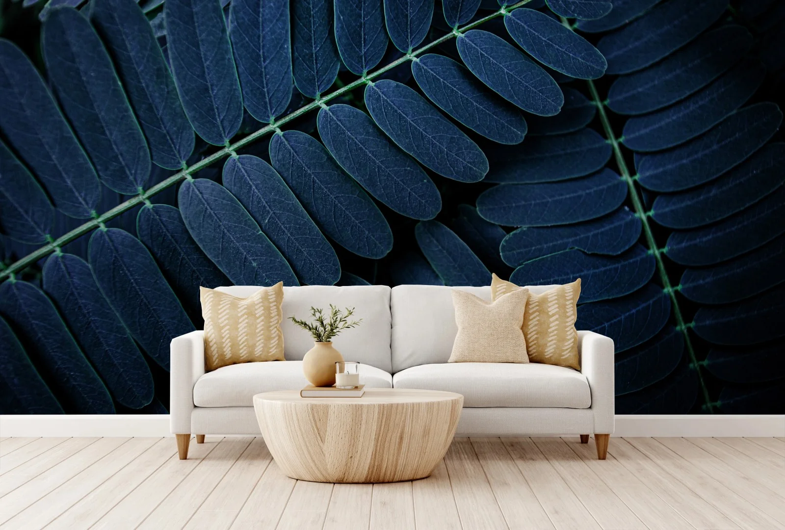 Rivivi la calma della natura con un motivo di foglie blu in macro che aggiunge profondità e raffinatezza agli spazi, ideale per creare atmosfere moderne e accoglienti.Di piùMeno