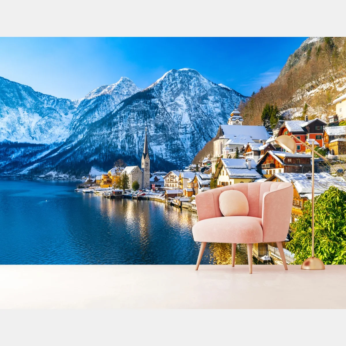 Lascia che questo scatto di un tranquillo borgo alpino innevato, con le sue case colorate riflesse nelle acque del lago e le maestose montagne sullo sfondo, trasformi la tua parete in un angolo di pace e bellezza.Di piùMeno