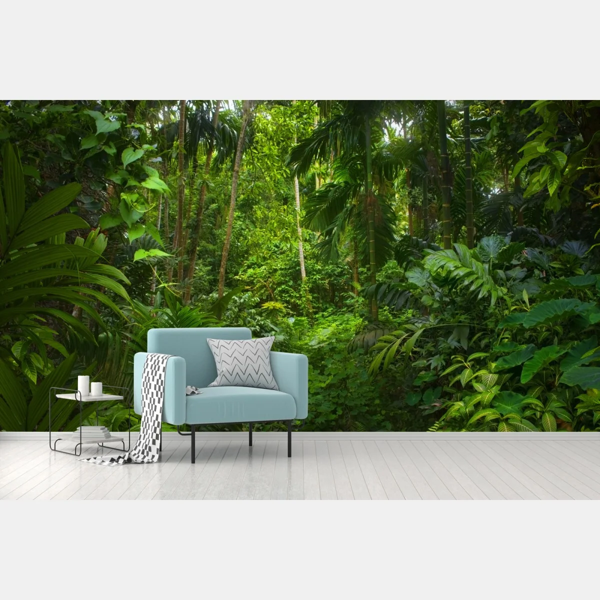 Immergiti in un'oasi di verde e calma: questa immagine cattura la ricchezza della giungla tropicale con dettagli nitidi e colori intensi, trasformando ogni ambiente in un angolo esotico.Di piùMeno