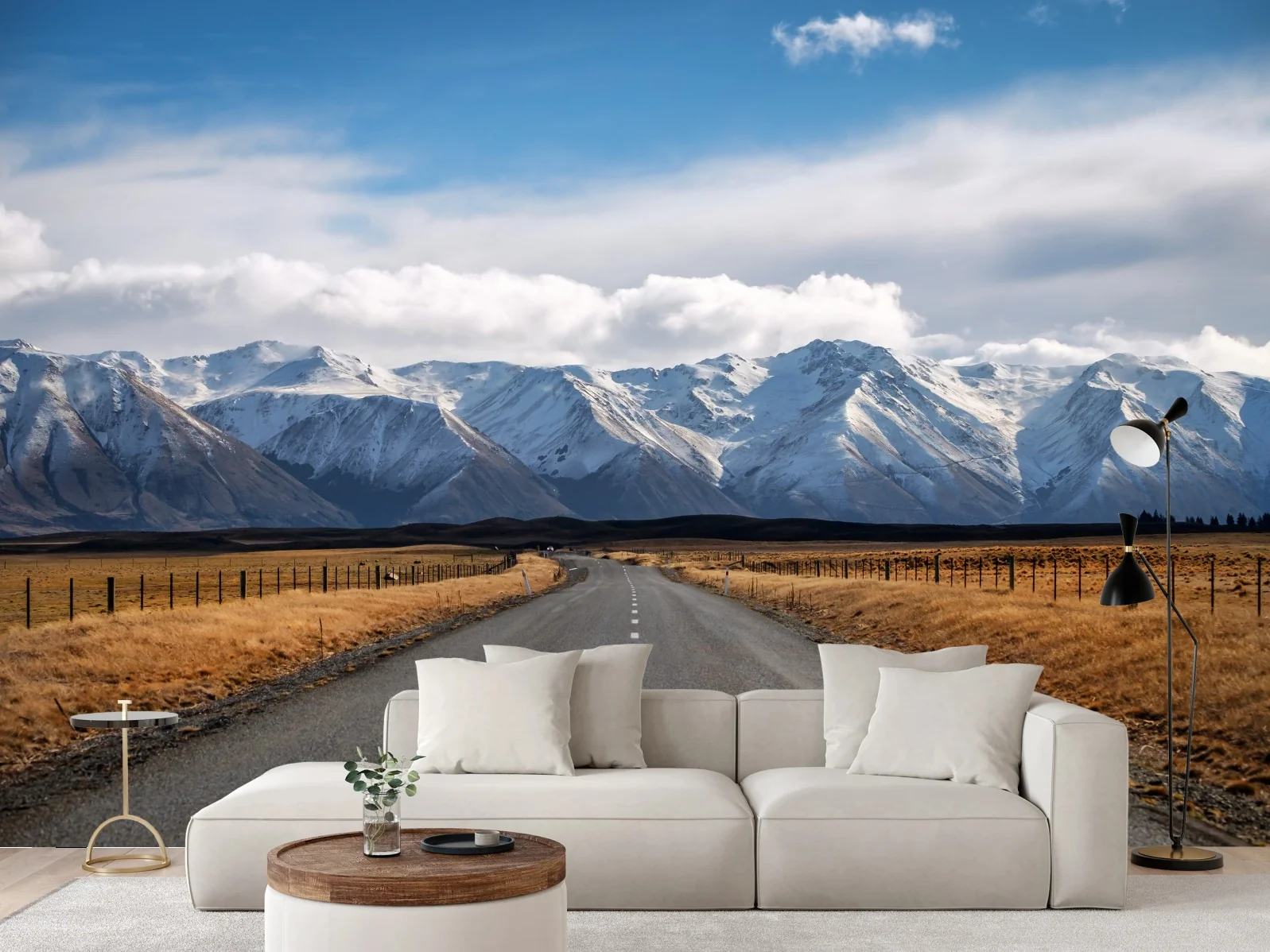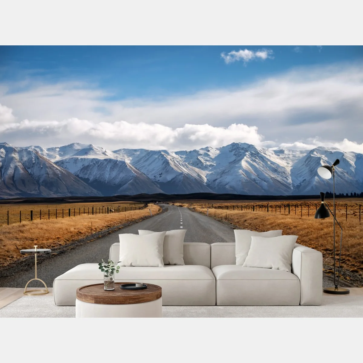 Carta da parati Strada verso le montagne innevate della Nuova Zelanda