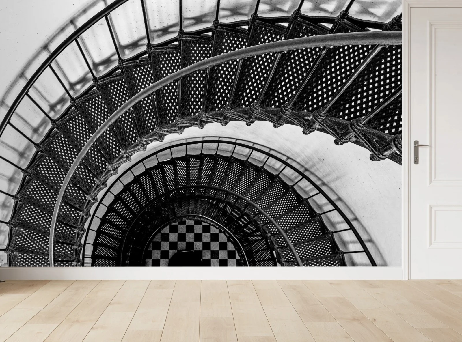 - architettura, bianco e nero, prospettiva, pattern, scala a chiocciola, spirale, ringhiera, design minimalista, geometria, pavimento a scacchi