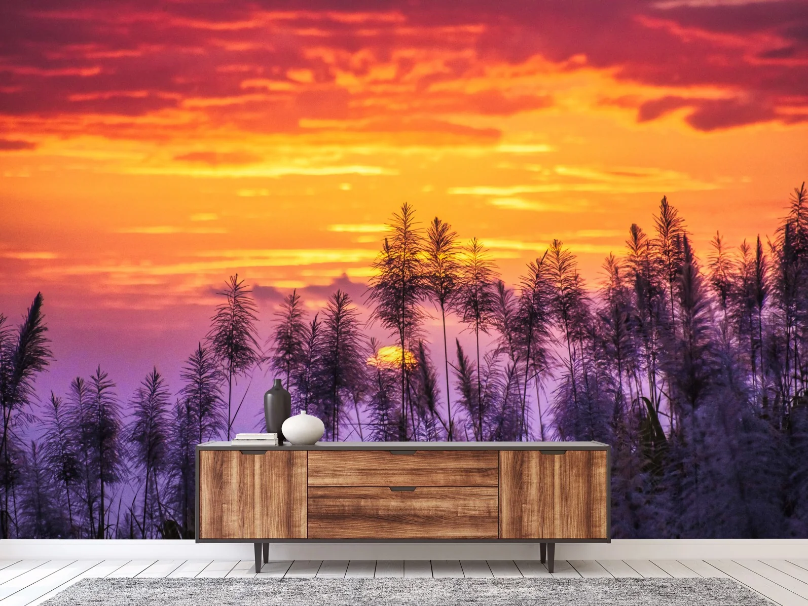 - natura, paesaggio, erba, tramonto, cielo, atmosfera, canne, silhouette, colori vividi, giunco