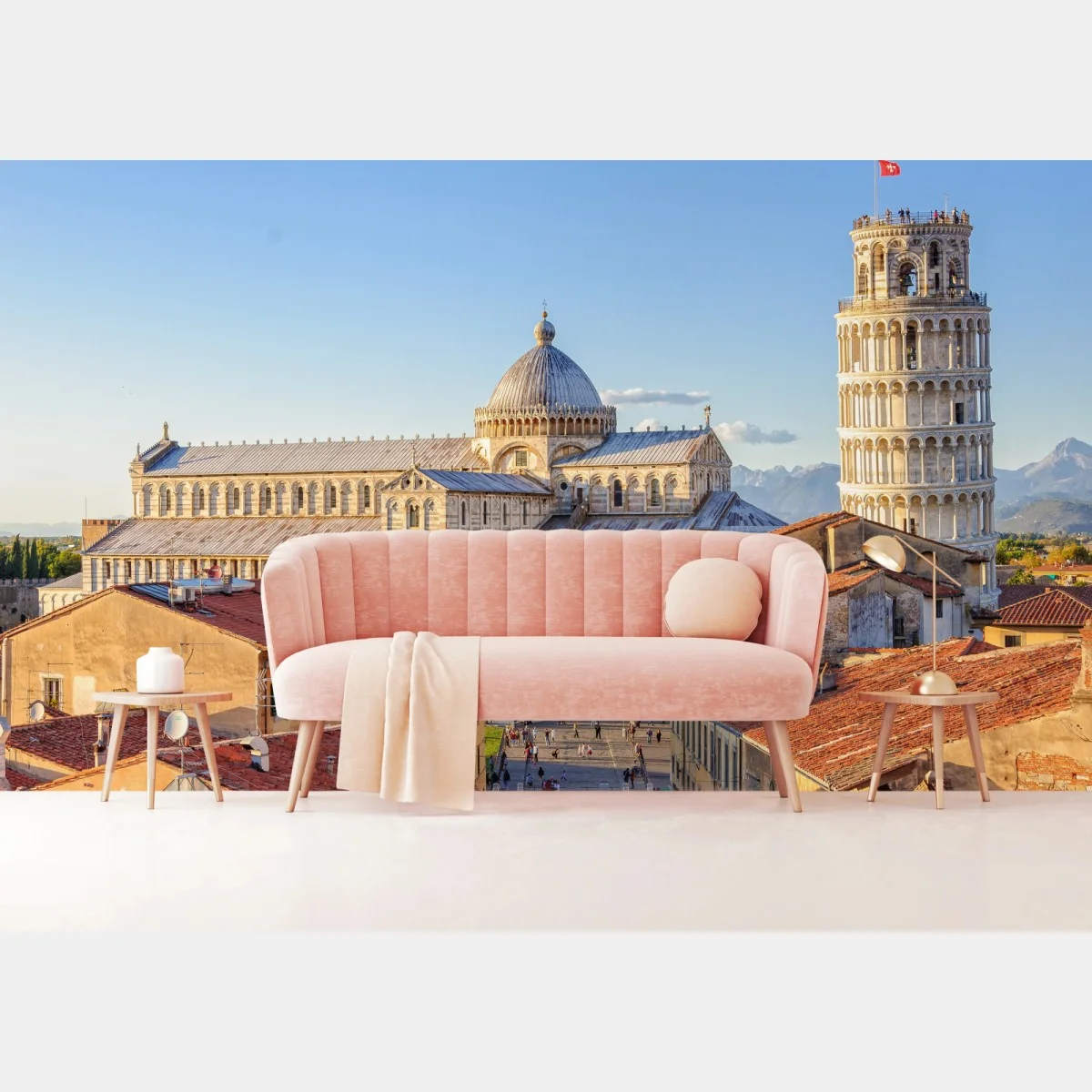 Carta da parati Vista iconica di Pisa: torre pendente e duomo al tramonto