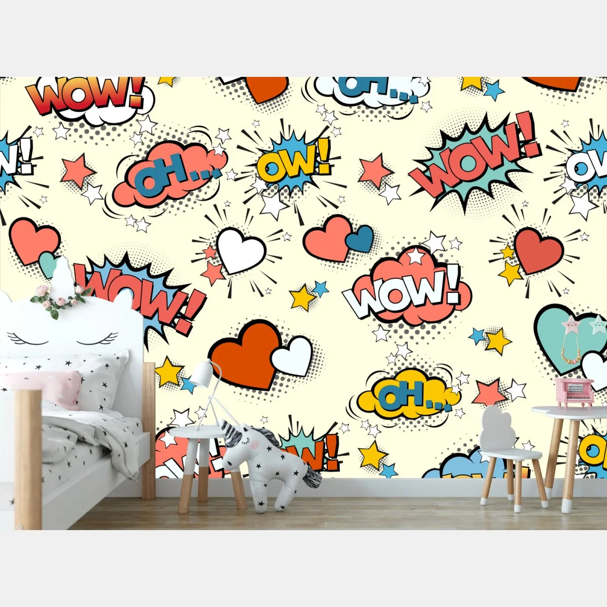 Carta da parati Motivo pop art con fumetti e cuori