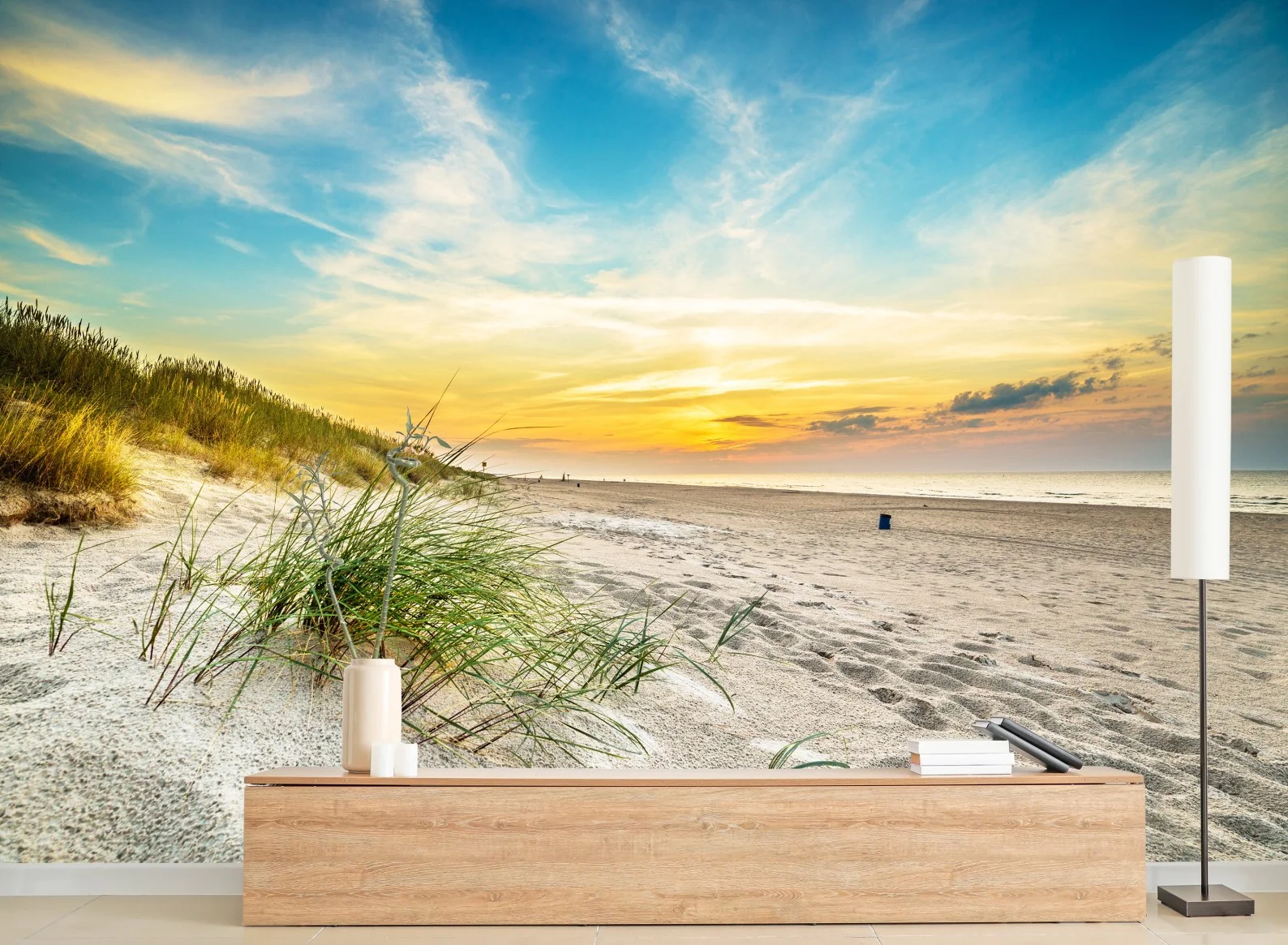Carta da parati Tramonto sulla spiaggia con dune e erba marina