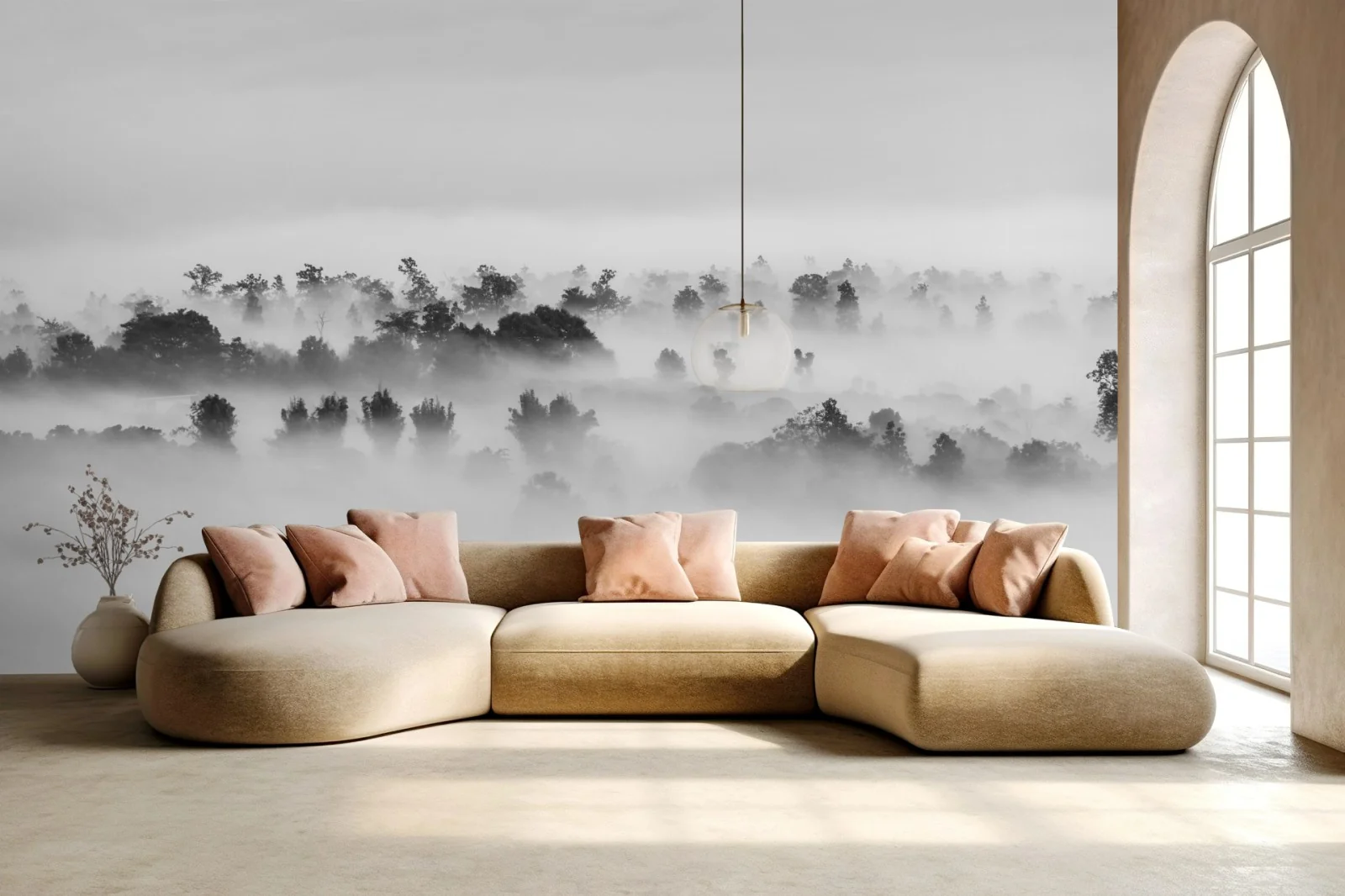 Carta da parati Mare di nuvole sulla foresta - minimalismo in bianco e nero