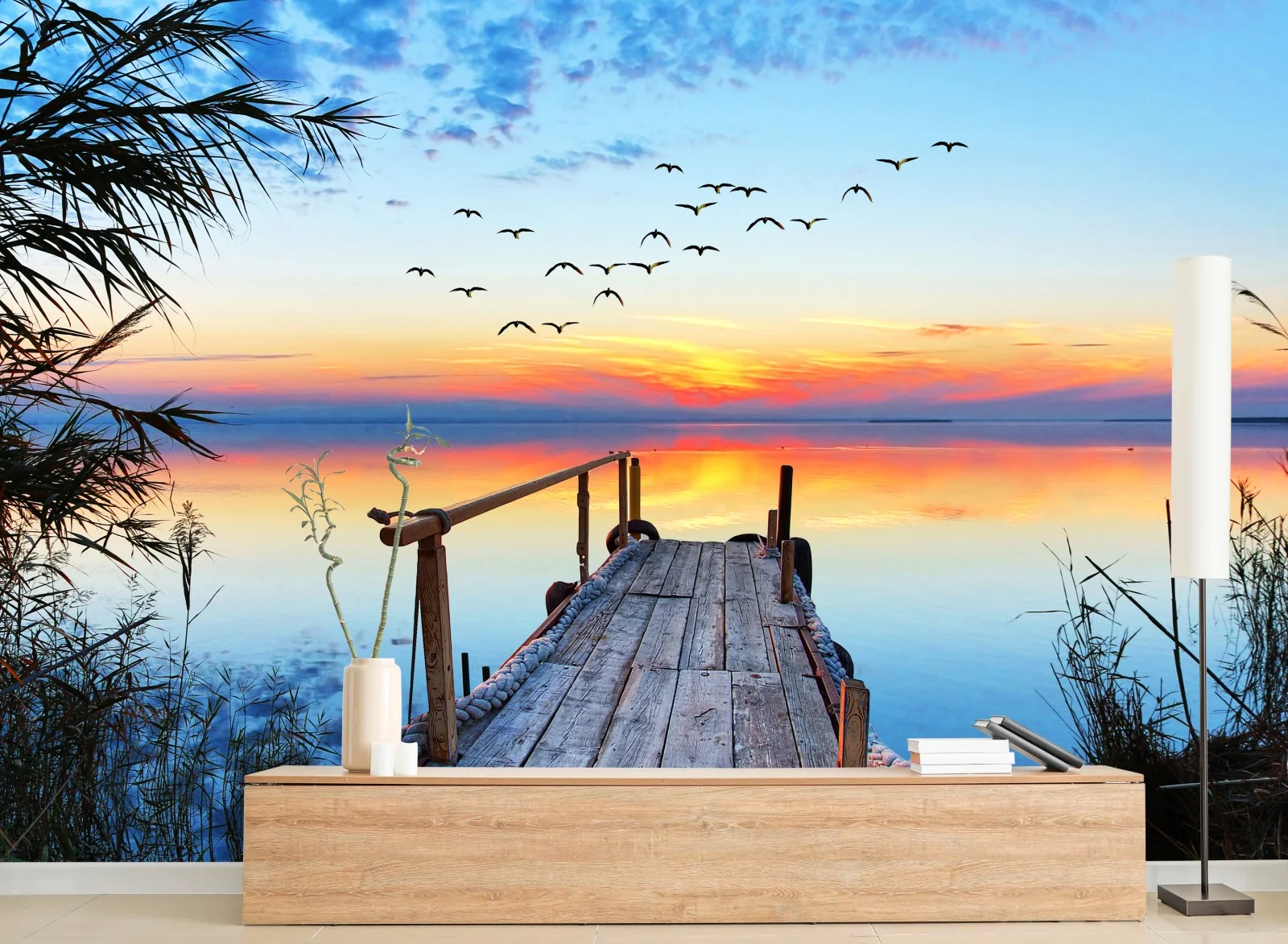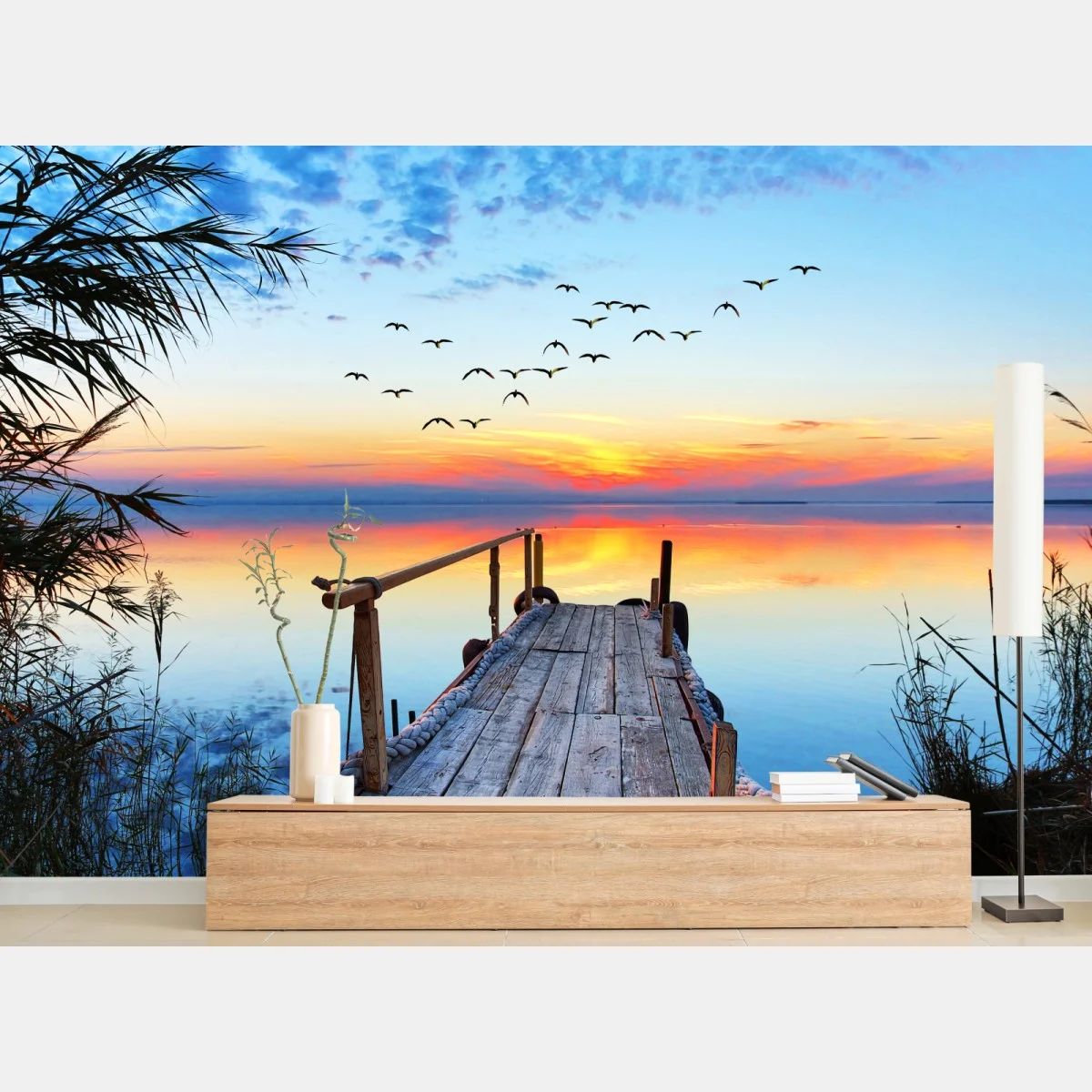 Carta da parati Tramonto sul molo: vista serena sul lago