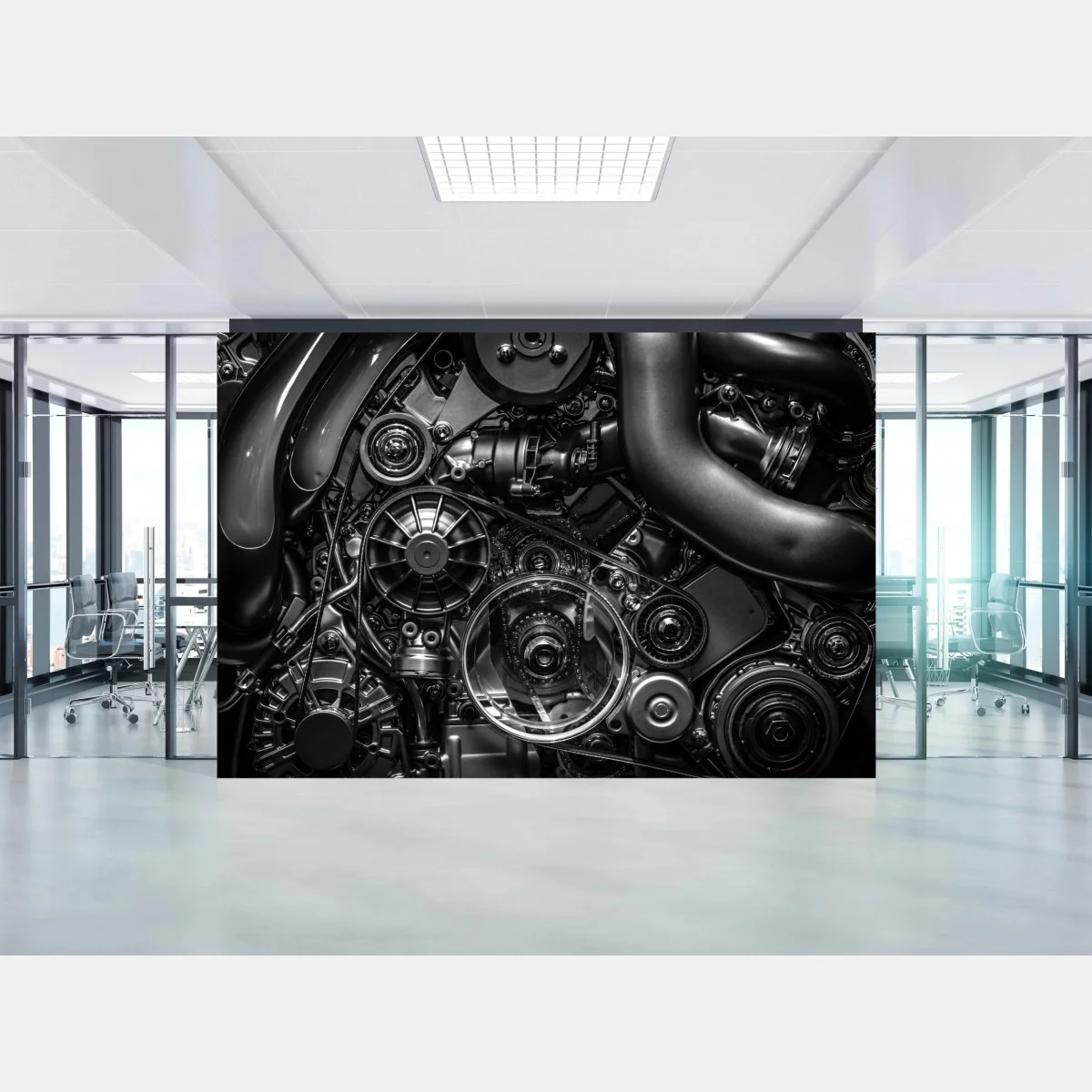Carta da parati Dettaglio di motore industriale in bianco e nero