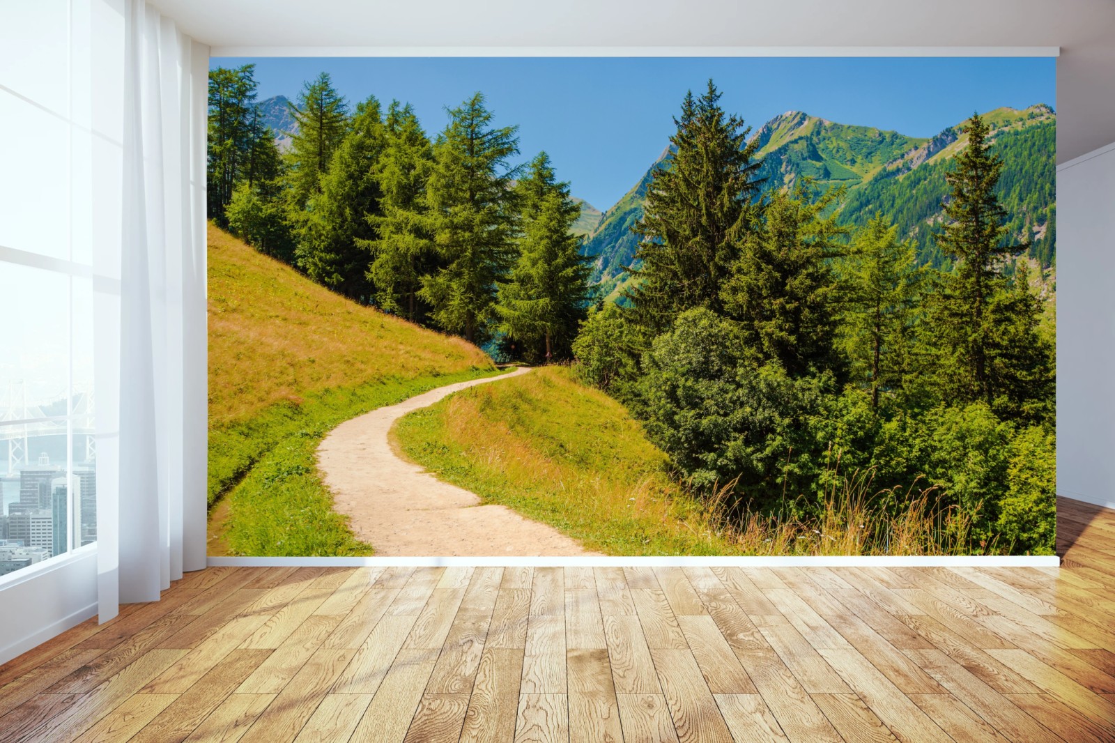 Carta da parati Sentiero estivo tra i pascoli delle Alpi Svizzere