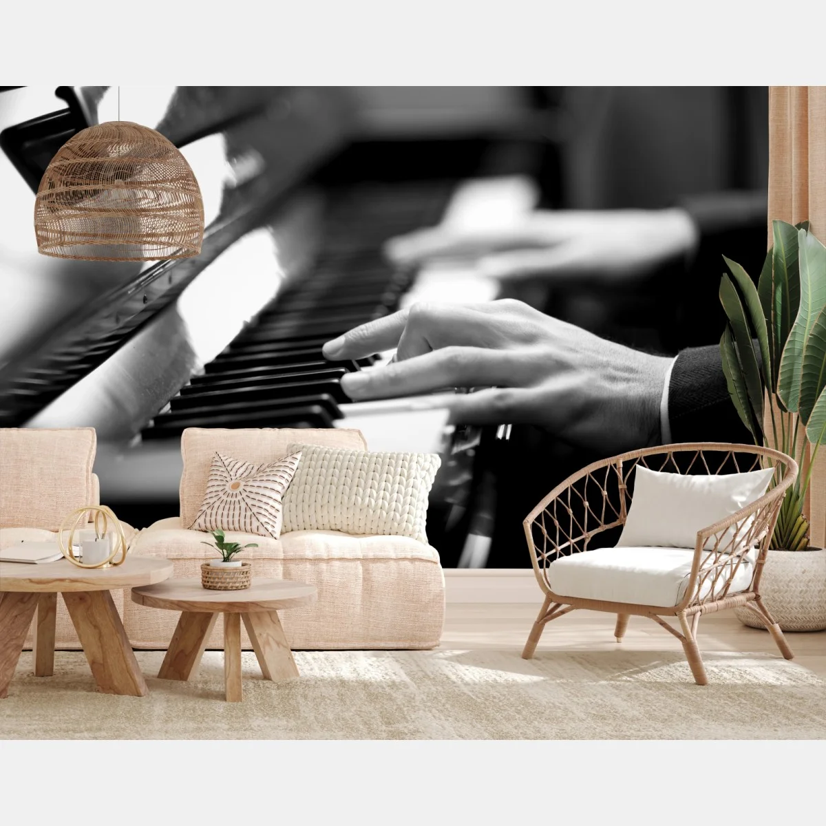 Carta da parati Eleganza al pianoforte in bianco e nero