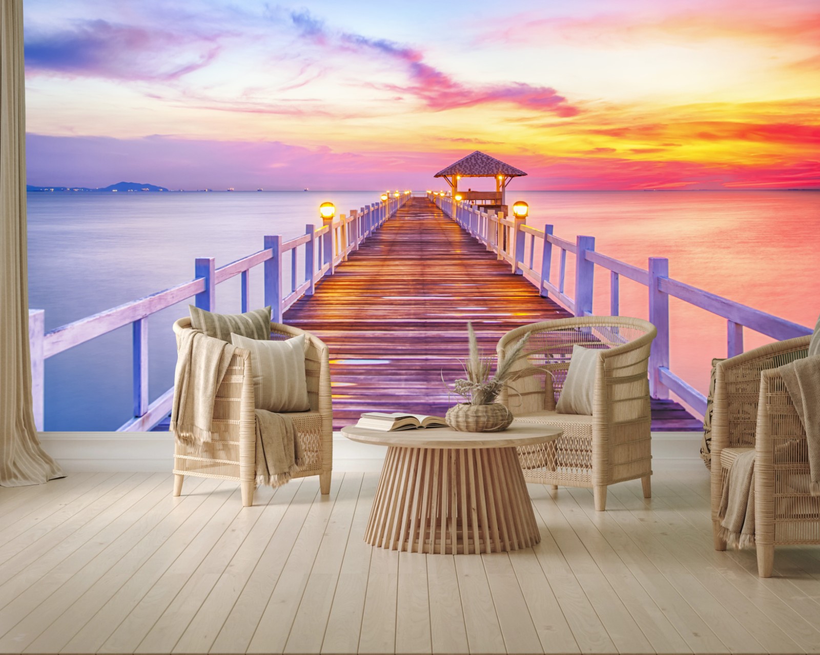 Carta da parati Tramonto sul molo: vista serena sul mare