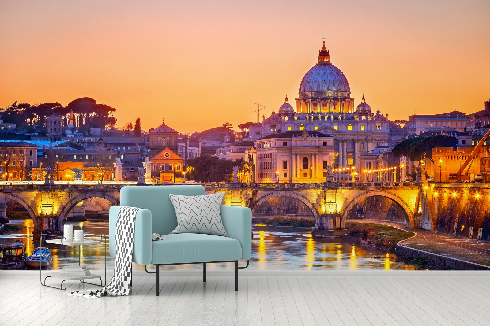 - panorama, ponte, architettura, paesaggio urbano, tramonto, luce dorata, roma, san pietro, tevere, cupola