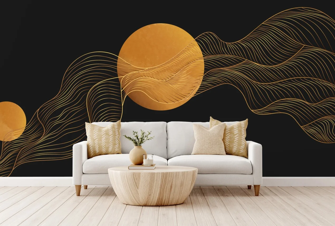 Carta da parati Eleganza dorata su sfondo nero