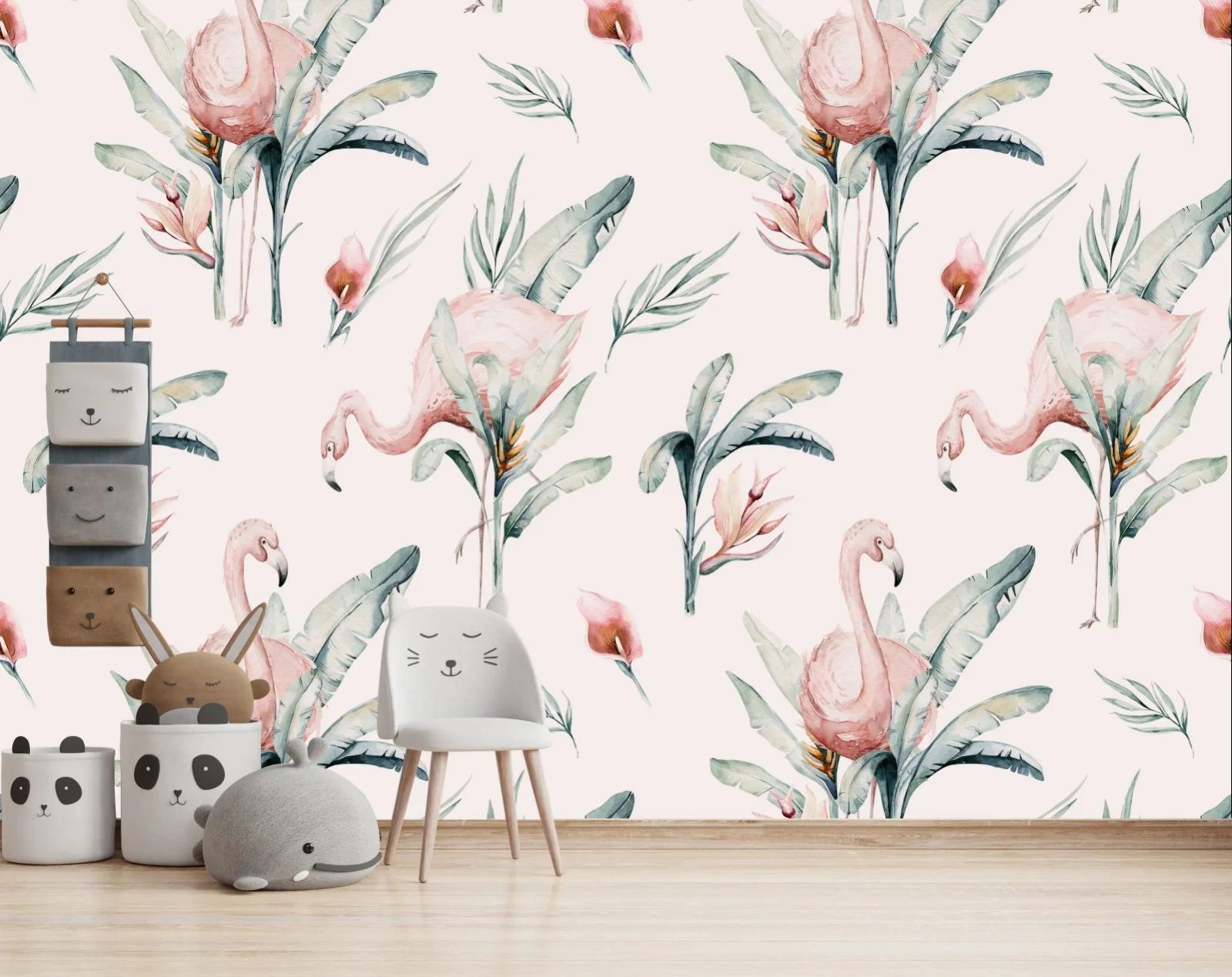 Carta da parati Fenicotteri acquerellati su sfondo rosa