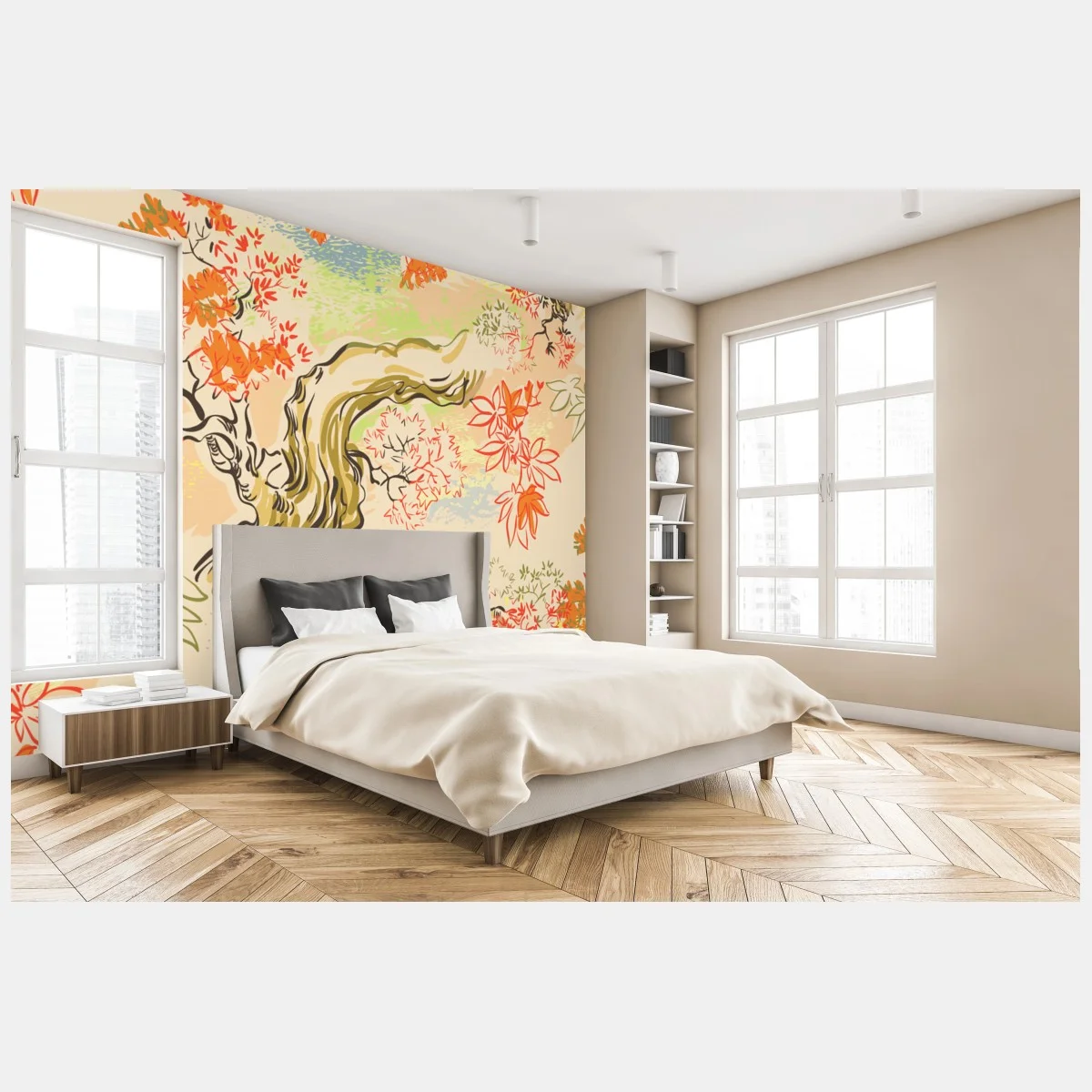 - alberi, colori pastello, foglie autunnali, carta da parati, stile orientale, motivo giapponese, design decorativo, arte botanica, aceri, rami contorti