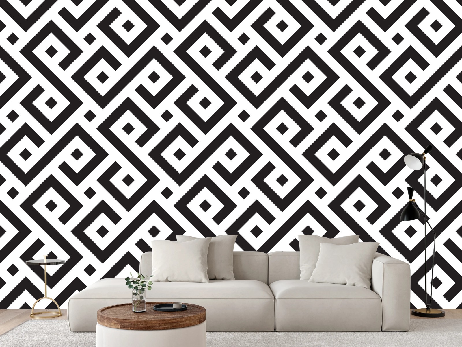 Carta da parati Motivo geometrico labirintico in bianco e nero