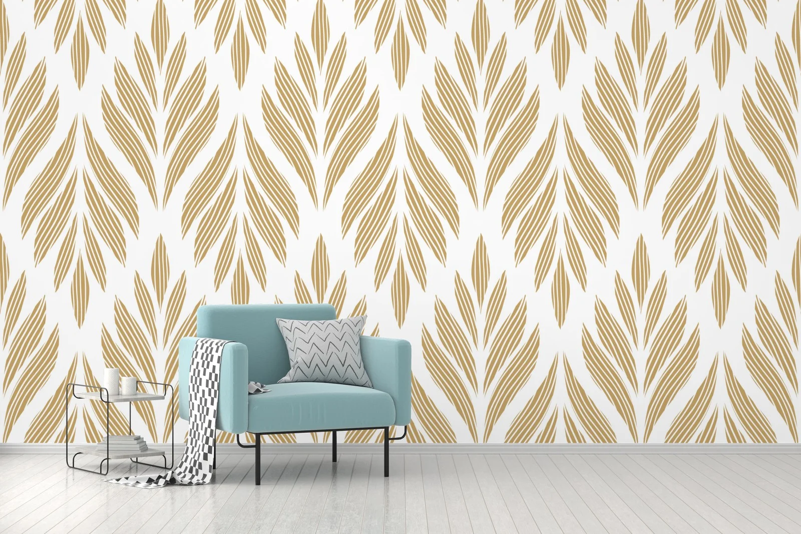 - elegante, pattern geometrico, decorativo, oro, design minimalista, bianco, carta da parati, art déco, foglie stilizzate, motivo foglia
