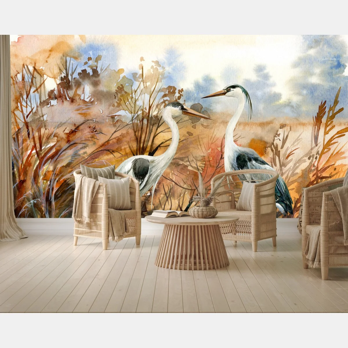 Carta da parati Aironi nella palude acquerellata