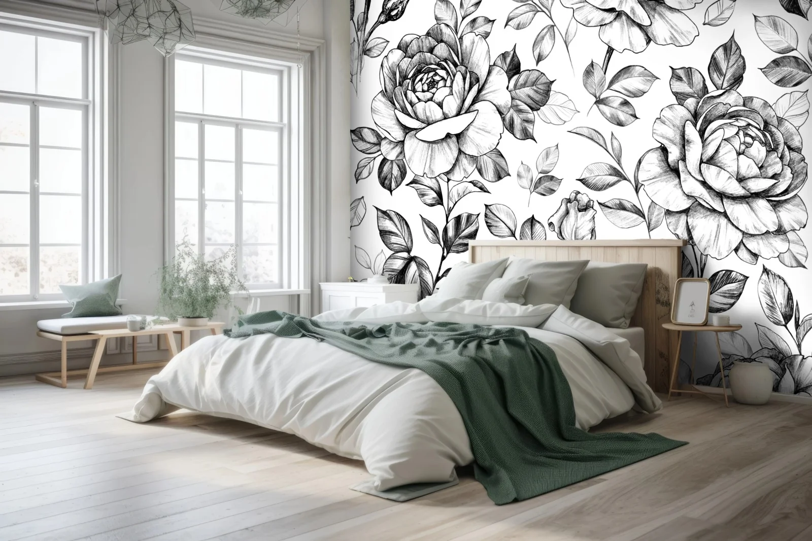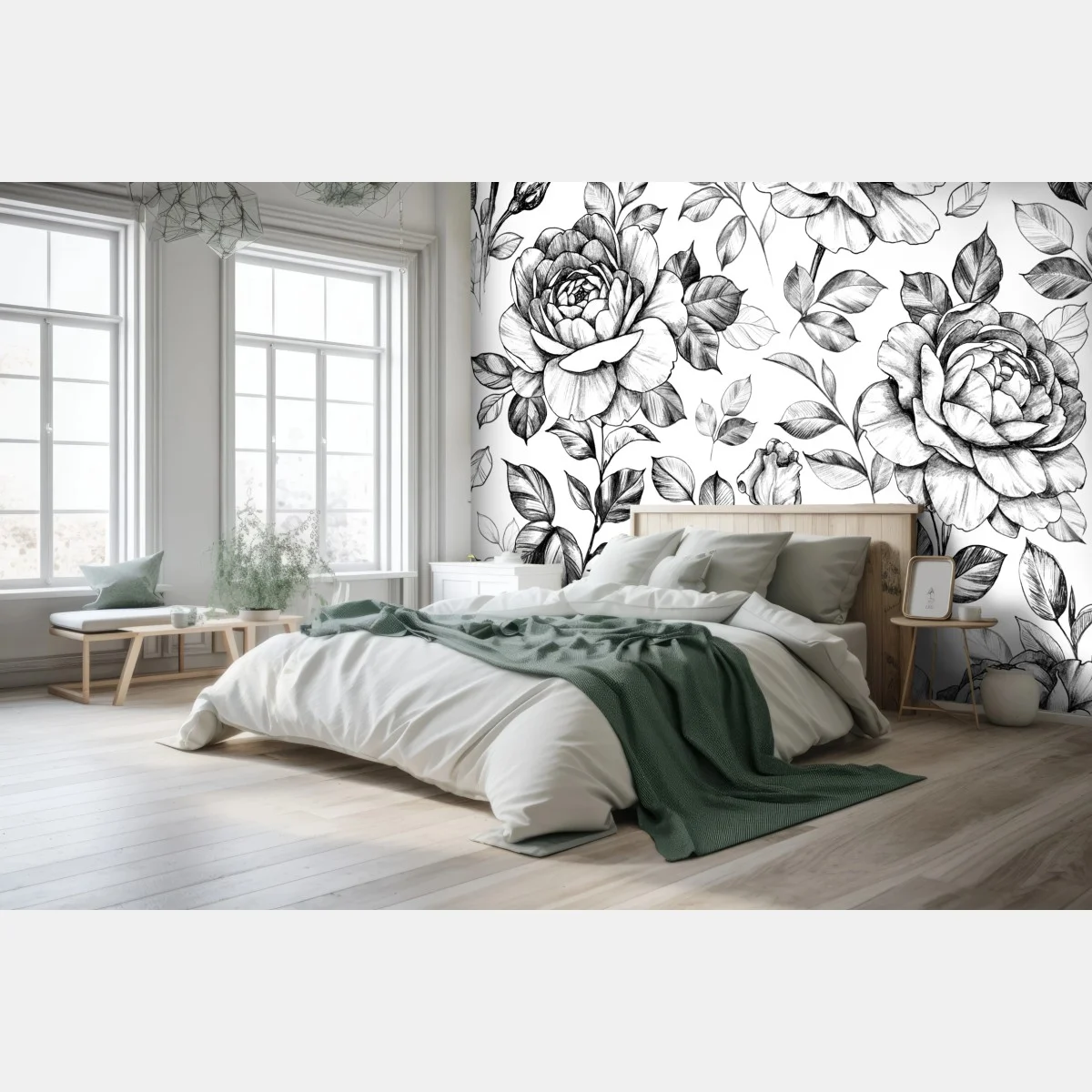 Carta da parati Motivo di rose disegnate a matita in stile vintage