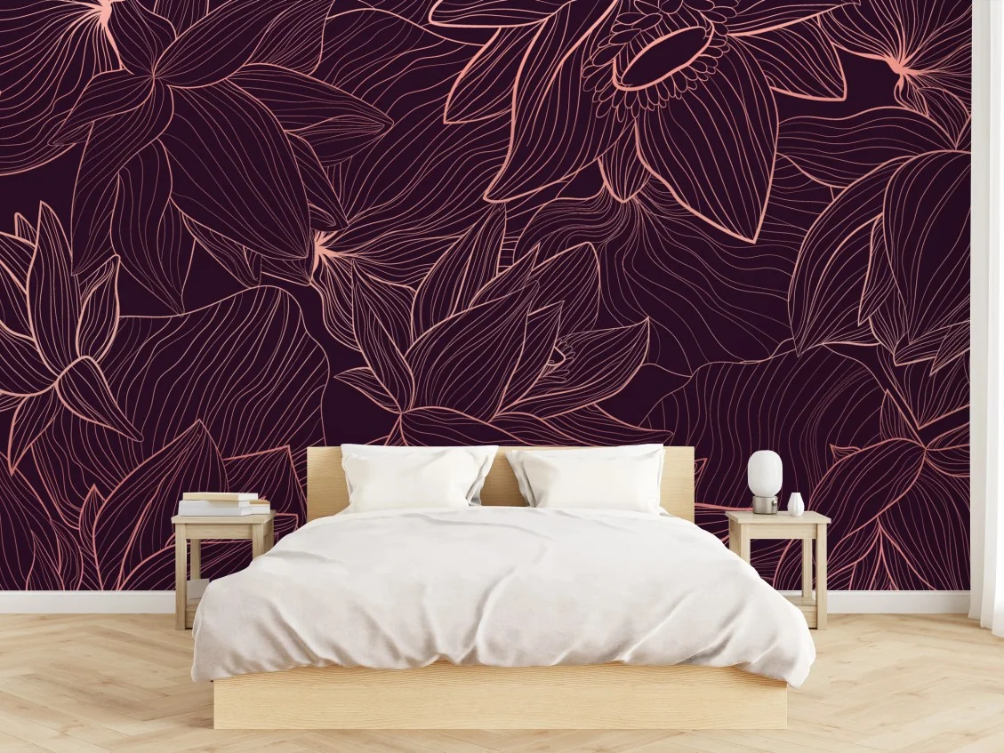 Carta da parati Motivo floreale lineare in rosa antico