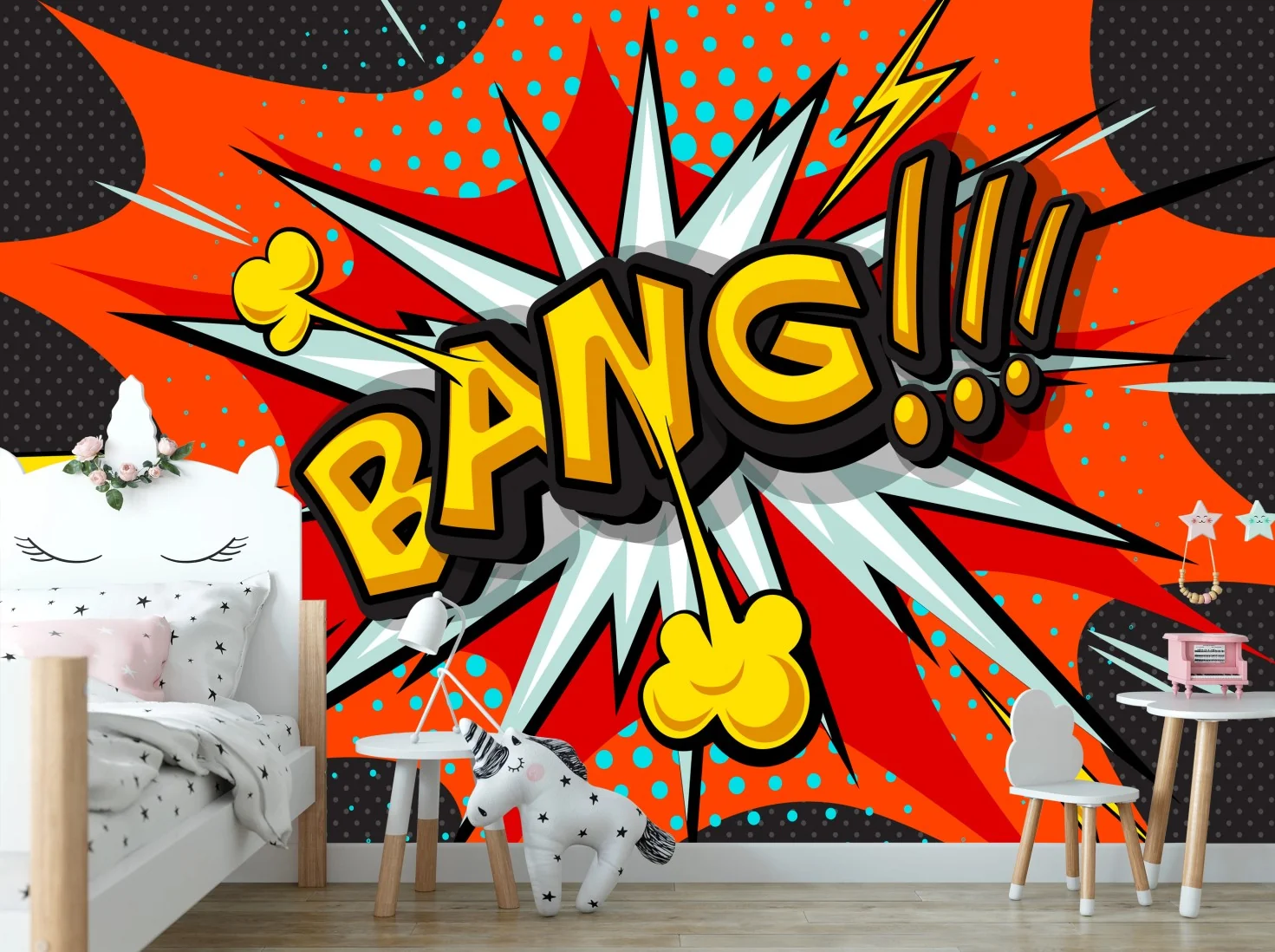 Carta da parati Esplosione pop art fumetto con onomatopea bang